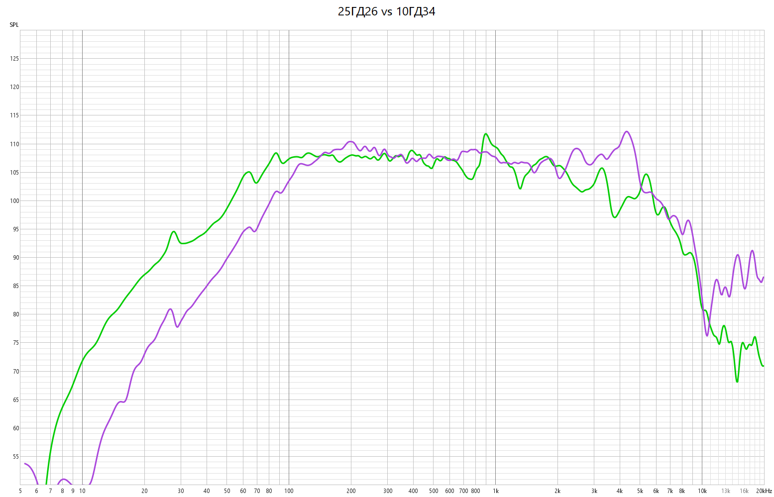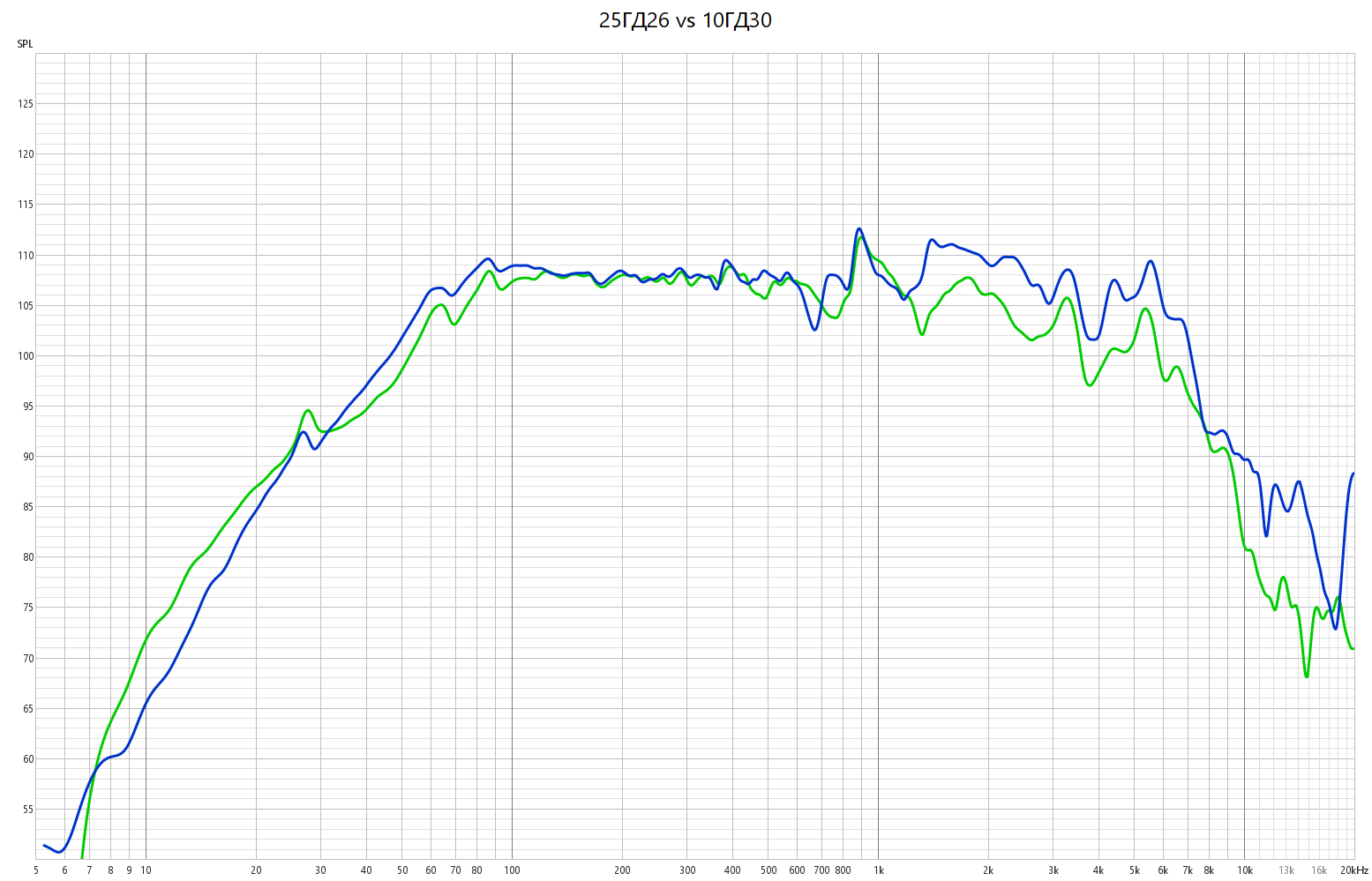 Они конечно очень близкие динамики но разница есть. 10 ГД30 лучше для двухполоски. Если выбирать динамик для 2х полоски то я бы однозначно выбрал 10 ГД30. (10ГД синий)