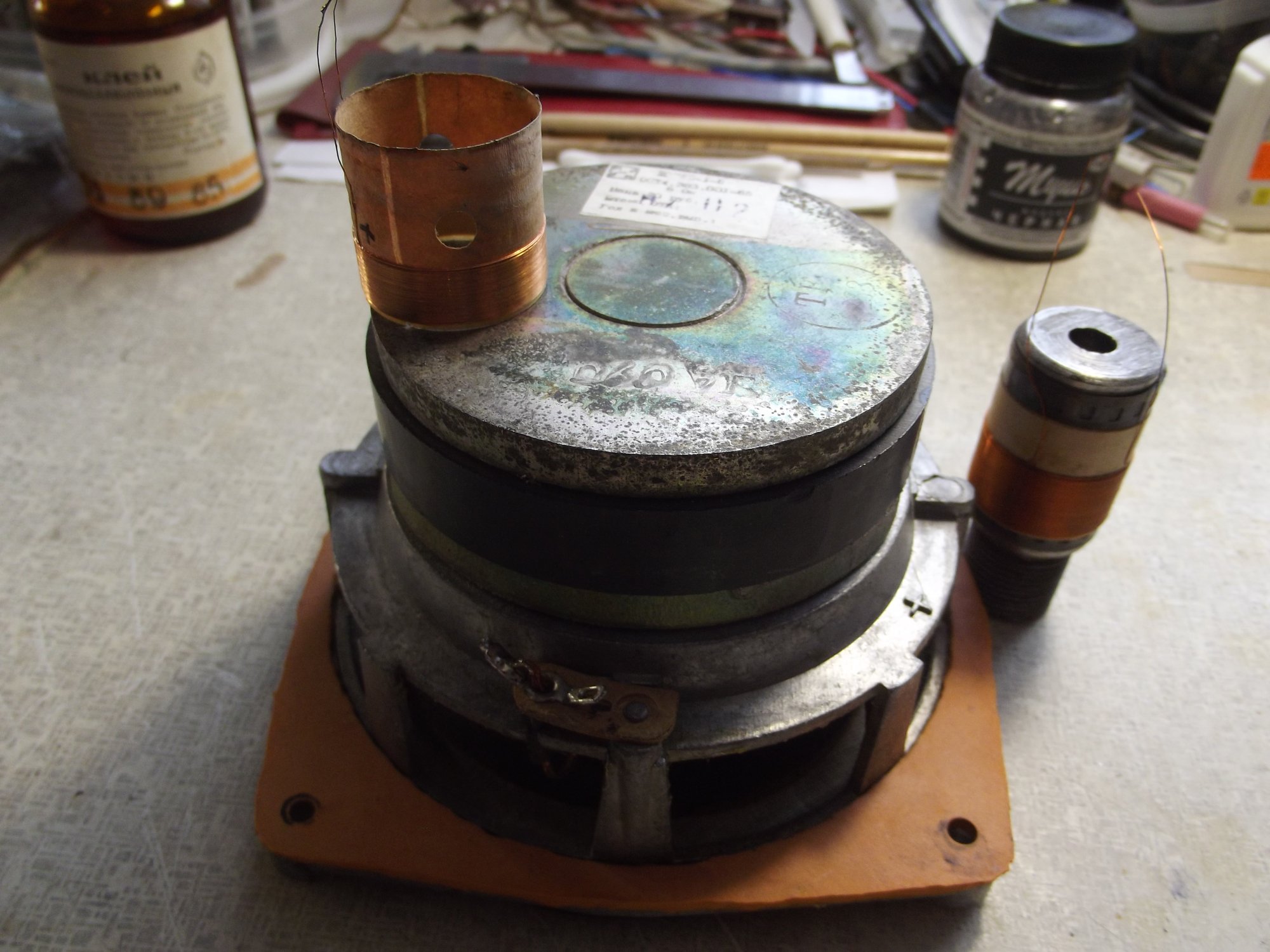 Нет,дядюшка Александр,диффузор с резинотканевым подвесом остался родной.Заменены катушки путём выклейки-вклейки.Для себя отметил-магнитная цепь и рама(корзина) одинаковы(унифицированы) с 25ГДН1-4.У меня есть динамики 15ГД11А(1985г) так там "корзина" короче в габаритах.