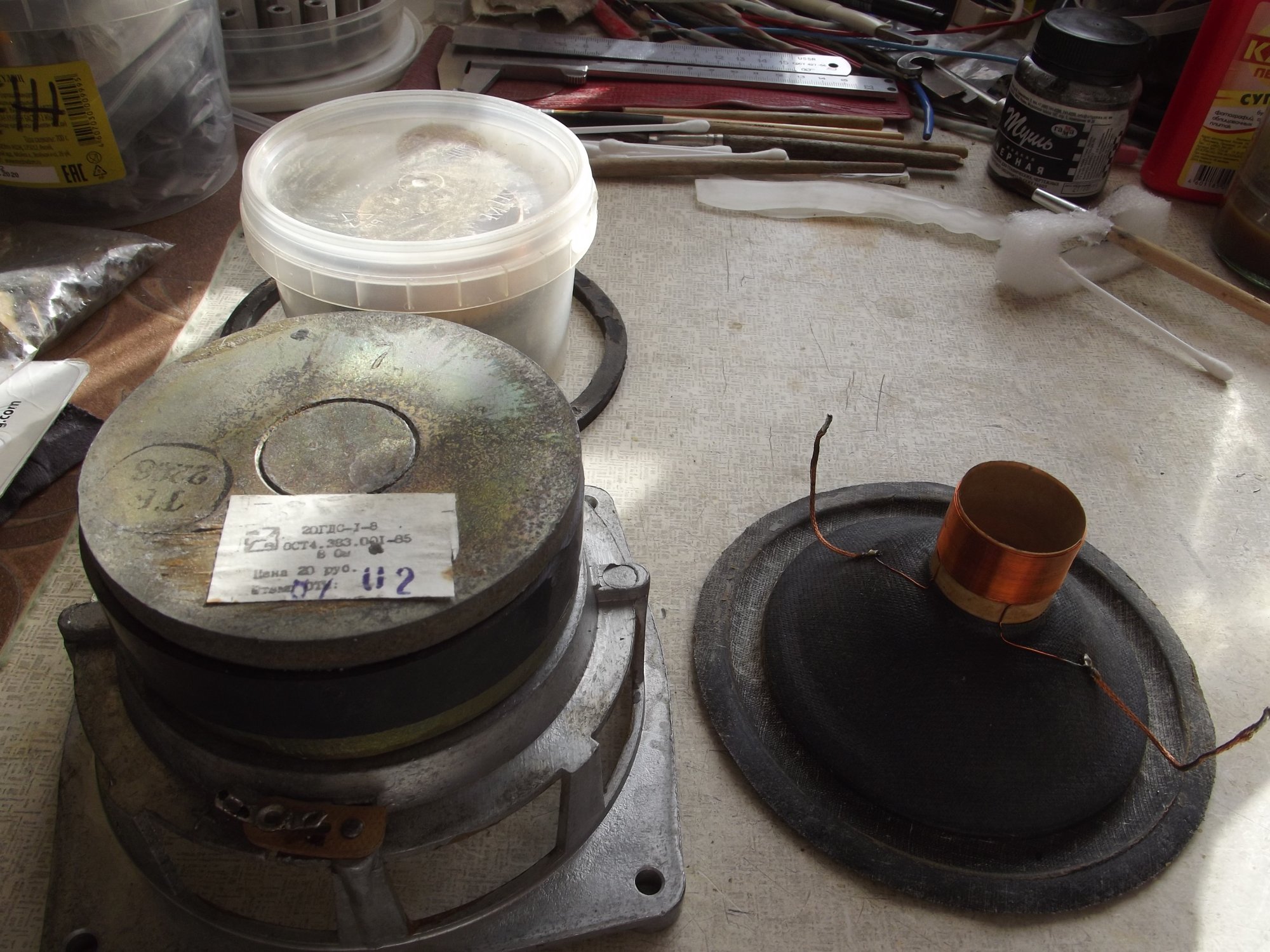 Это что - в прошлом году,друг,приобрёл такие за "очень дёшево"(почти даром) и попросил меня изготовить на их базе активные для ноутбука на основе деталей "сделай сам" с Али.Так там НЧ динамики были 20ГДС1-8(СЧ), вот почему дёшево.Пришлось на базе 20ГДС1-8 изготовить 25ГДН1-4 путём изготовления и замены звуковых катушек.Фото прилагаю.Результат-товарищ доволен!