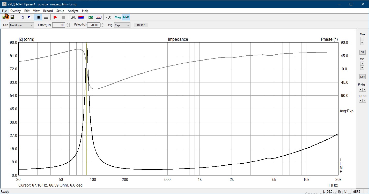 Всё-таки открытый корпус не особо катит за оформление. Перемерял параметры динамика в метре от пола горизонтально и вертикально. Ничего особо не поменялось. Думаю, там не только подвес деревянный, но и центрирующая шайба. Прилагаю и картики и лимпы. И неприятность имеется в том, что на известном у нас сайте, торгующем ремкомплектами к динамикам, один из покупателей отметил высокую жесткость ремкомплектной шайбы, не позволявшей получить положенную частоту резонанса.