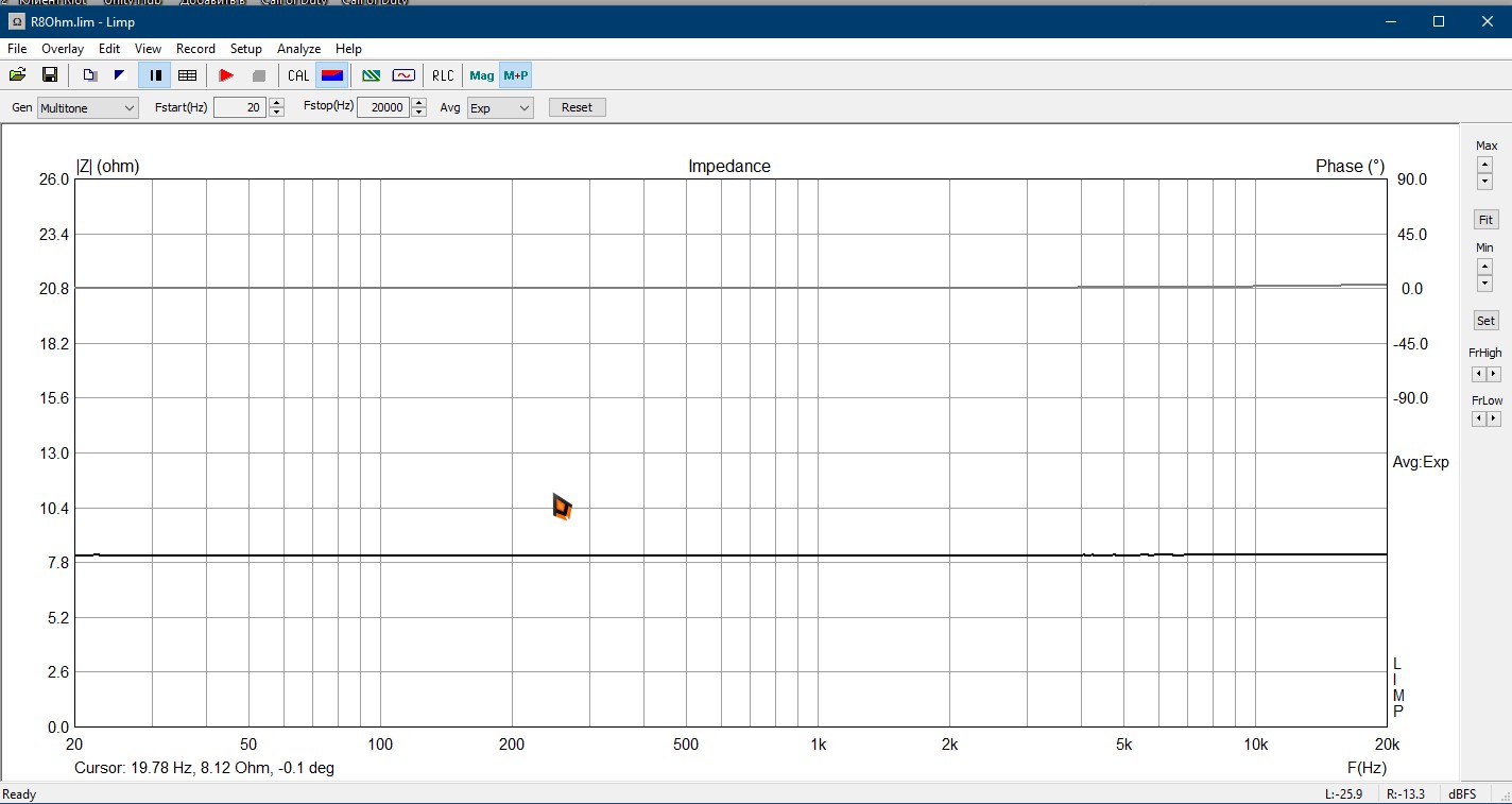 Я стараюсь сконцентрироваться на самих АС, а первичные телодвижения я делал, читая Вашу инструкцию здесь на сайте, резистор 27 Ом, используется выход на наушники. Для контроля базовых замеров прикрепляю здесь замеры с закороченными контактами и замер большого резистора 8 Ом. Ну и замеры второго динамика - чуда не произошло, все почти то же самое.Вот например, вы не пишете - удалось ли калибровать, сделать компенсацию измерительных шнуров, какой номанал резистора поставлен и пр.