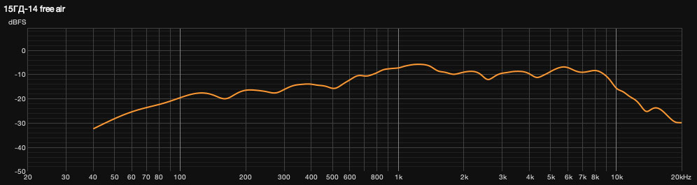 Вот один из не самых лучших 15ГД-14 free air, т.е., без ничто, в руке. В ящике кривулька до 600-700-800Гц подравняется.