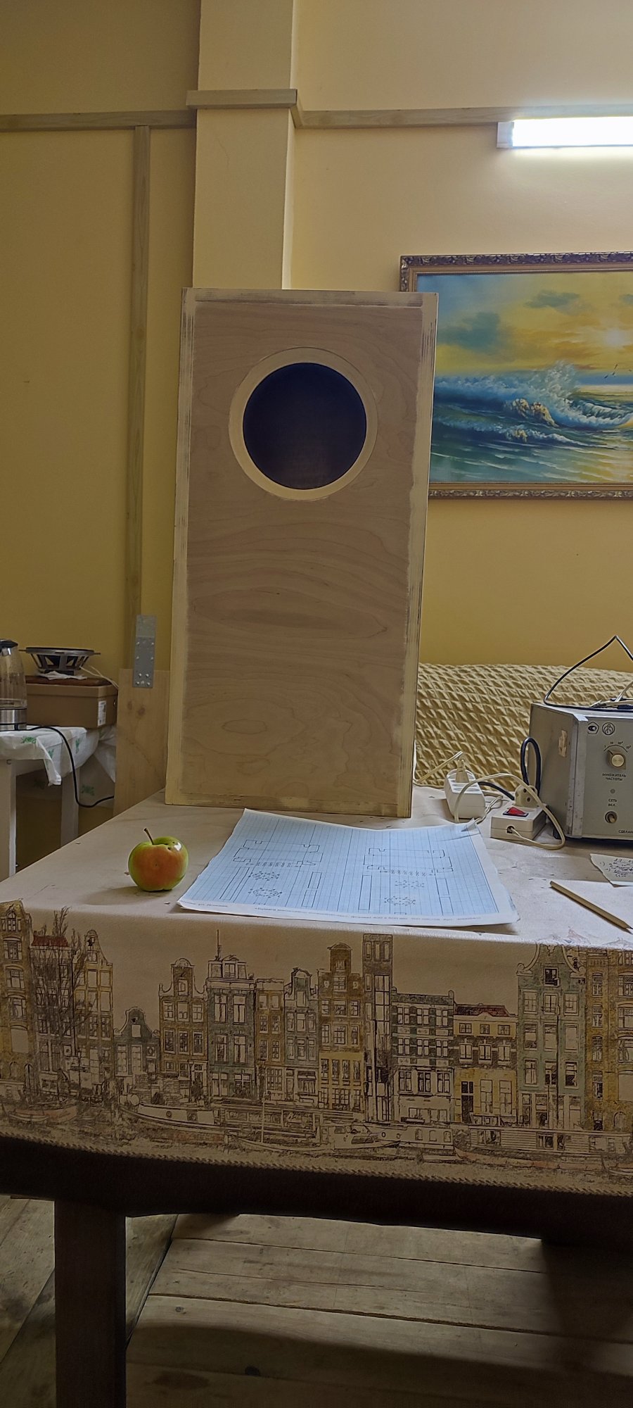 Нормально. Эти динамики играют хорошо почти в любом объеме от 18 до 45 л. Тут, на мой взгляд, под 30-35 л. Рекомендую углы корпуса закруглить (поскольку нет шурупов, это не проблема), тщательно зашпаклевать шпаклевкой по дереву, зашкурить и отдать в покраску профи (из любой авто мастерской с нормальной покрасочной камерой и специалистом). Дома вы лучше никогда не сделаете. Знаю, плавали)))