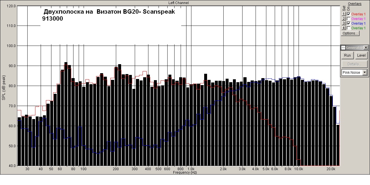 Как в той рекламе фирмы Кацман и Кацман в КВН, - "Фигня эти ваши Джонсон и Джонсон" - так и я встряну. Сегодня привез добрый знакомый колонку на бвыших моих динамиках Визатон BG20 , в которых я выдрал конусы, заменив их тканевыми пыльниками 30мм диаметром.И когда включил шум, то увидел на экране нечто просто охрененно ровное .