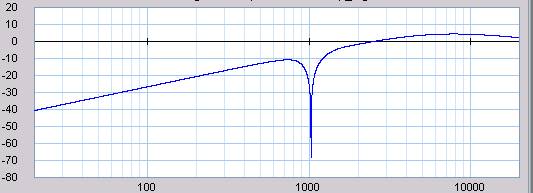 где жирная линия - полный фильтр, менее жирная - без правого конденсатора, тусклая - и без катушки. Отсюда видно, что и как подавляется на частоте 1000 Гц, в частности.