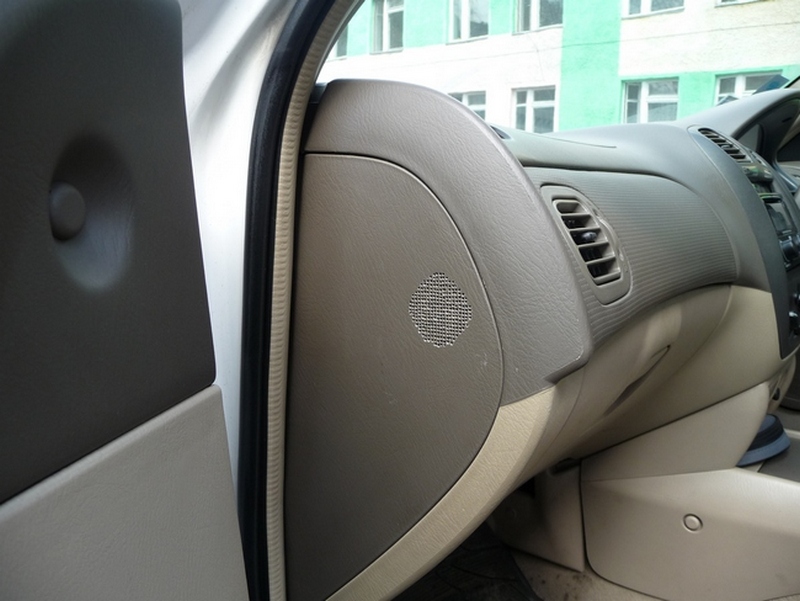 Пищалки без всякой подгонки параметров, только в соответствии с входным сопротивлением трансформатора подобраны кондёры в районе 2,0....2,2 мФ и подключены в параллель дверным эллипсным ШП 5"х7". Всё. Стерео-панорама, объём, воздух которого хватает и для задних пассажиров. Сделано в 2010...2011 годах. Точно не помню.