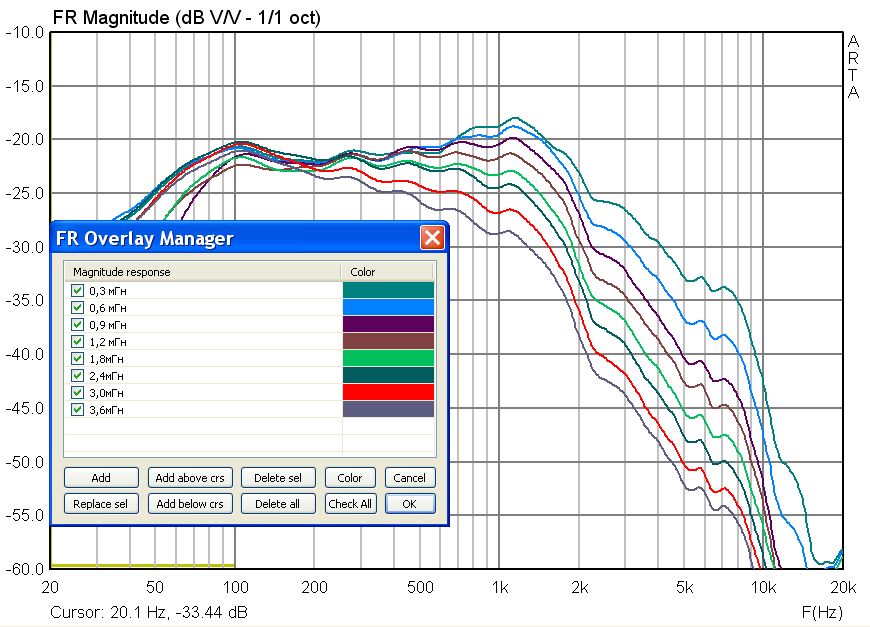 Практической пользы не имеет, но мне было интересно. Чистый динамик и с катушкой 2-3-4-5-6 мГн.