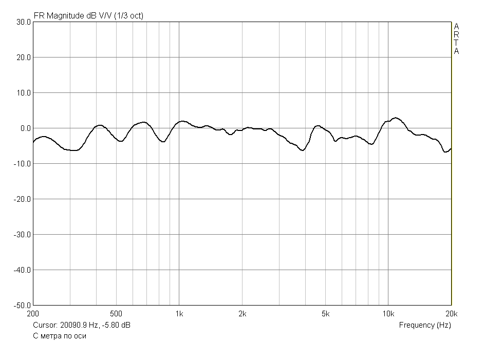 Считаю, что результат очень неплох. Удалось срезать грыжу на 1...2 кГц. При повороте колонки на 30 градусов результат вполне удовлетворительный.