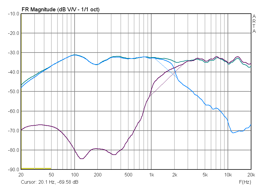 При сведении я старюсь, чтобы крутизна спада вне рабочей полосы у динамиков была одинакова, здесь это сразу не получилось. Видно что на стыке есть небольшие проблемы.