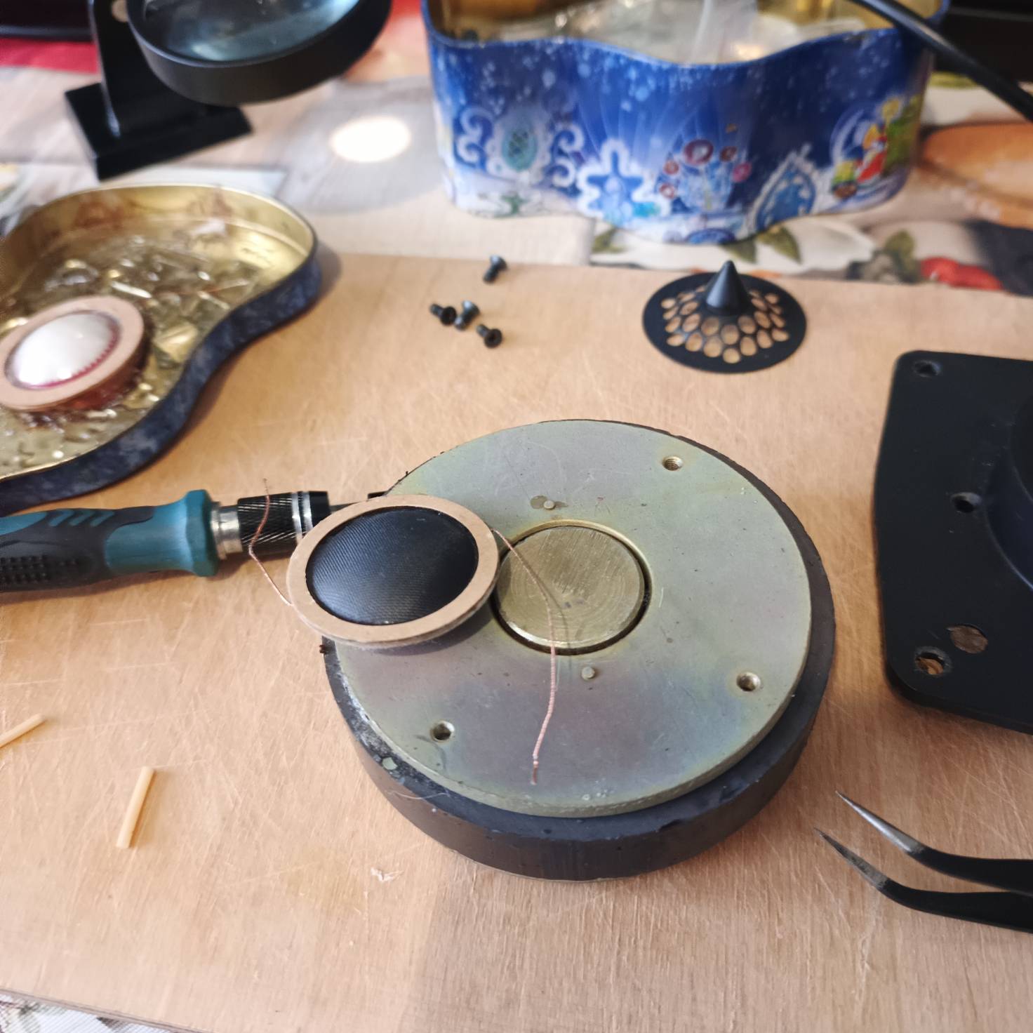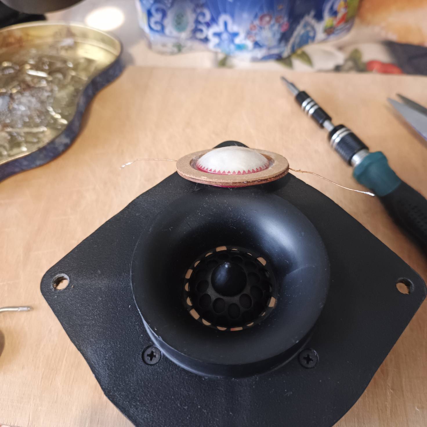 "Мягкий" (народно крестьянская характеристика) пылезащитный колпак, может просто "проглогить" пик на 6кГц и погасить его. Но с учетом того, что на углах 15/30/45 градусов, завал АЧХ стремится к граничной частоте 2.5кГц, нет смысла вообще с такой кривой АЧХ у Lavoce выживать больше чем он может. А вот к ВЧ есть притензии, а она сможет взять (подхватить) с 2.5кГц?