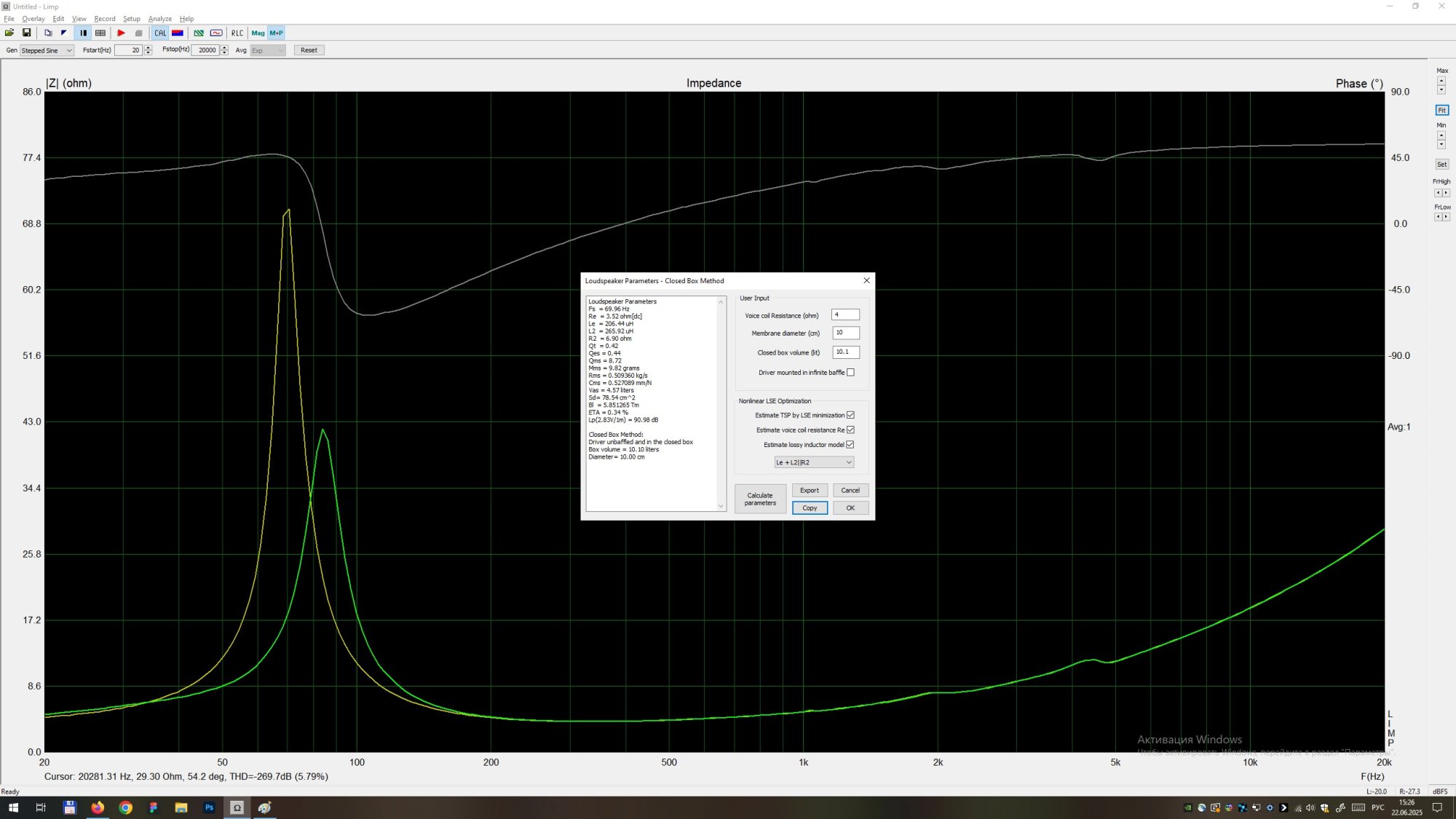 Добротность и объём очень хорошие, а резонанс - печаль, всё портит. Измерения правдивы.