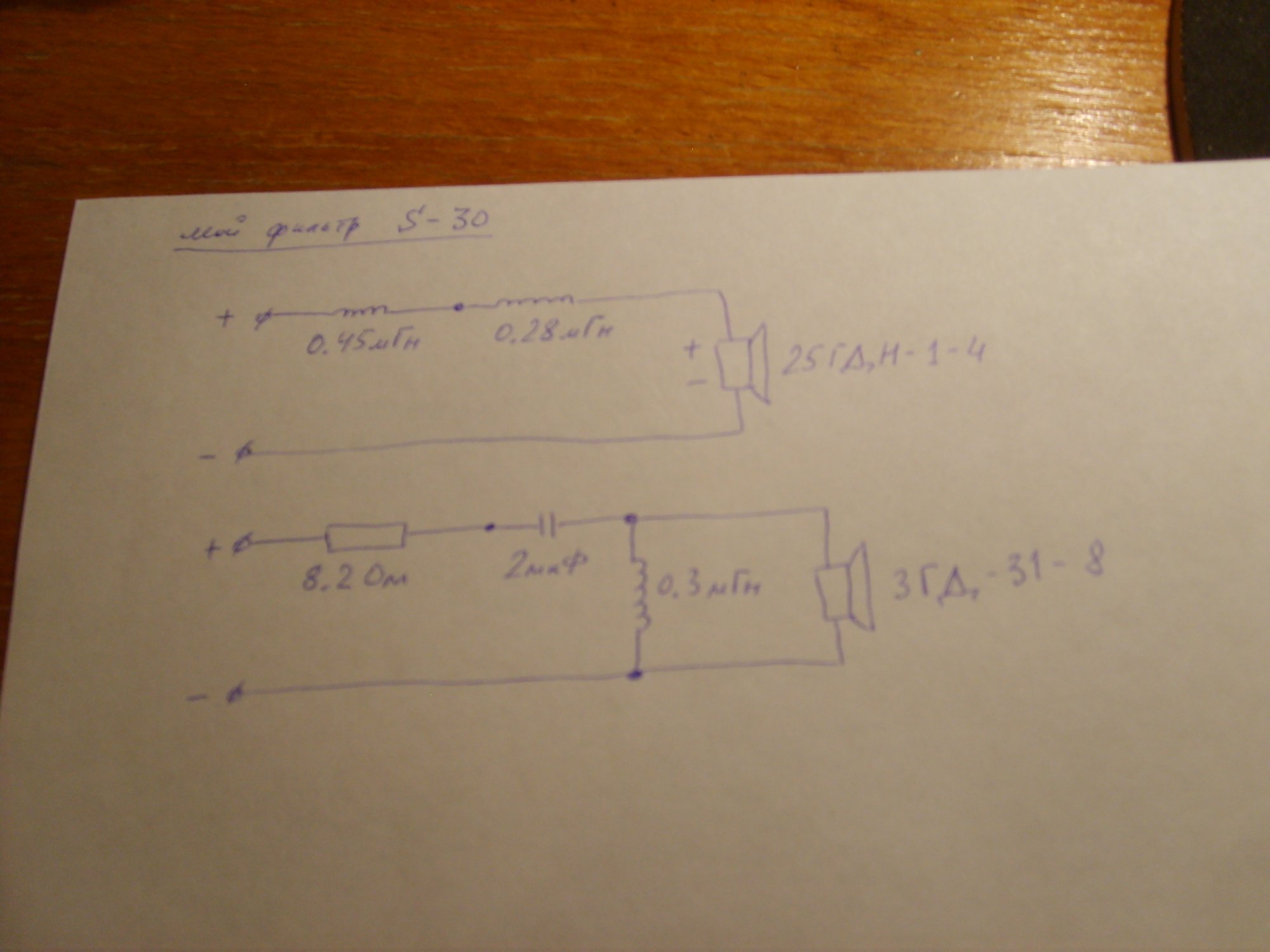 Ну по фильтрам разницы то практически и нет. На НЧ 0,73 мгн вместо 0,68, так для более слабого(менее чувствительного и "басовитого") динамика это скорее "благо". ВЧ фильтр на 6,5 кгц, с учетом того что сопротивление 3ГД-31 на этой частоте 10,5 ом, это вообще "учебник". Гасящий резистор перед фильтром не приятно но не смертельно. Остается только вопрос о качестве 3ГД-31 как звукоизлучателя. (Сравнение с "кубиками")