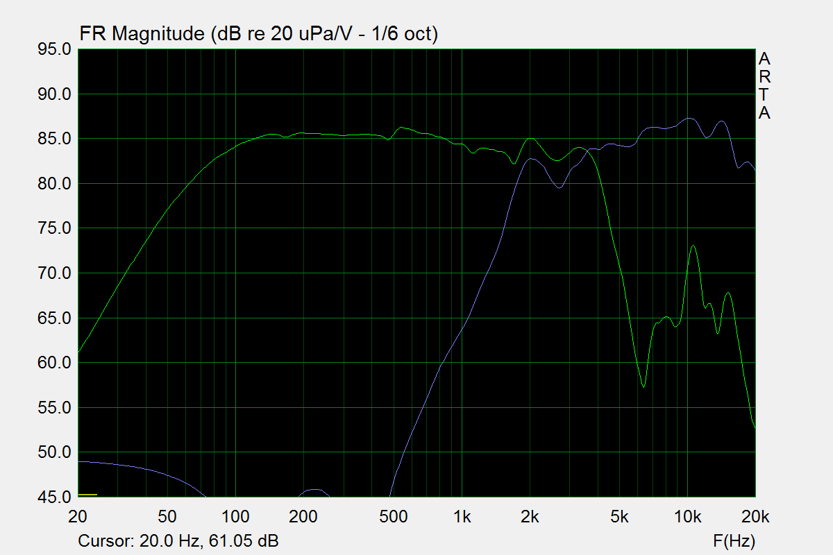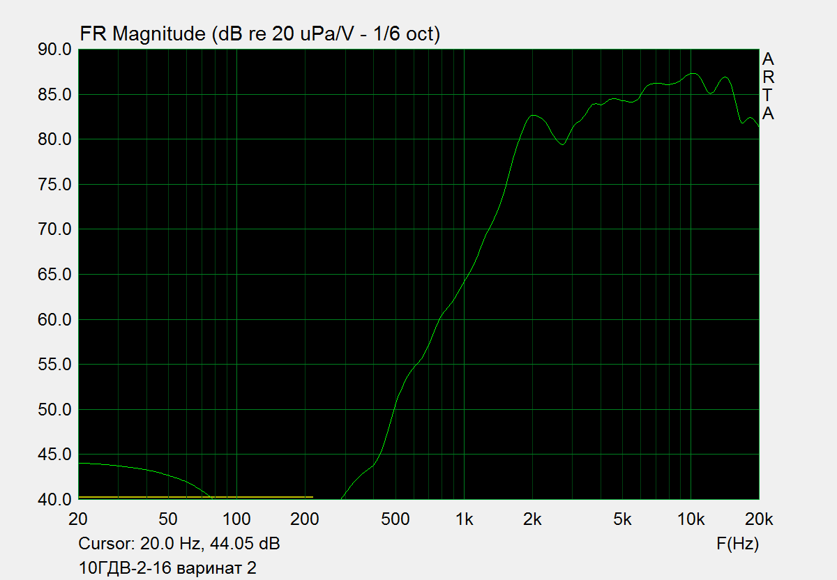 Ваша ачх нудно и скучно повторяет мою, снятую весной. Обратите внимание: участок до самых 4кгц- ровнее ровного. Что истинная правда. И это ещё не самое интересное. Самое интересное- прорисовка средины на этом участке совершенно шикарная. Пик на 4 кГц, оставшийся после завала на фильтре, красиво подчеркнёт срединку, акцентируя речь , а широкая направленность динамика позволит спокойно стыковать басовичок с любой пищалой, а не только с Визой TW70. Так что , вы на правильном пути.