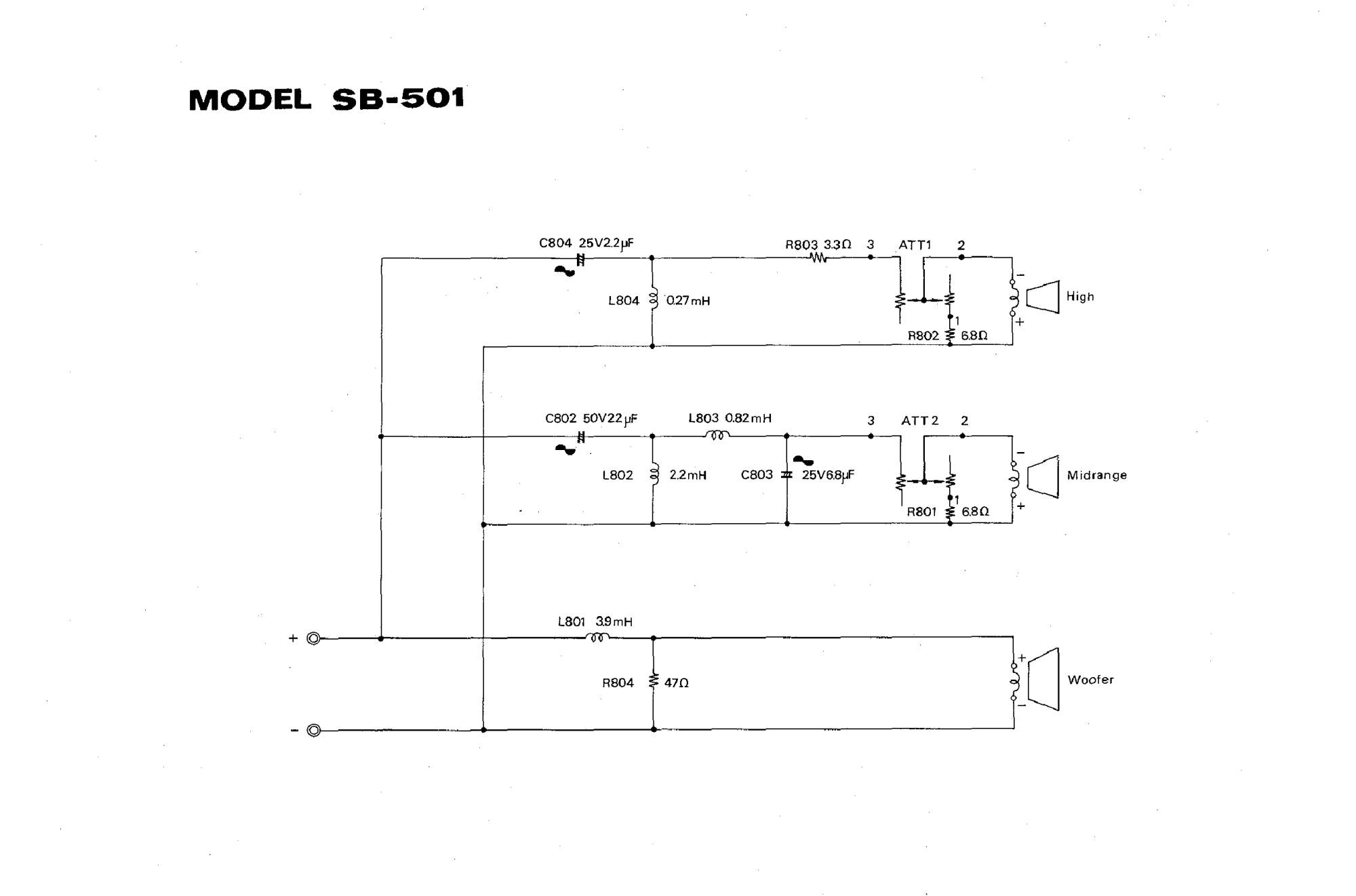 У "Technics SB-501" например такой L-Pad подключен к общему через резистор 6,8 ома.