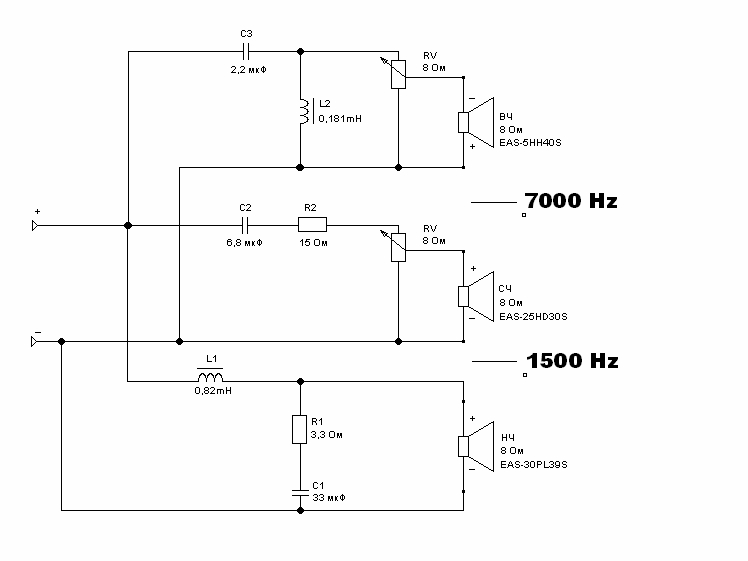 Если для твитера 8ом L 0,5мГн, R 2ом, C 3 мкФ, то для 4х ом твитера L 0,25 мГн, R 1ом, С 6мкф?