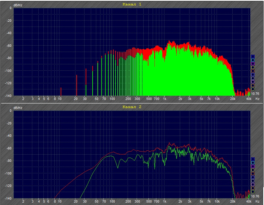 АЧХа динамика (розовый шум) на фото две одинаковые характеристики одна в виде забора вторая в виде линии кому как удобно.