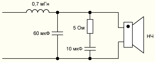 LR цепочка всегда параллельная и ставится последовательно с динамиком, это позволяет сгладить "ступеньку" которая часто бывает у ШП динамиков.