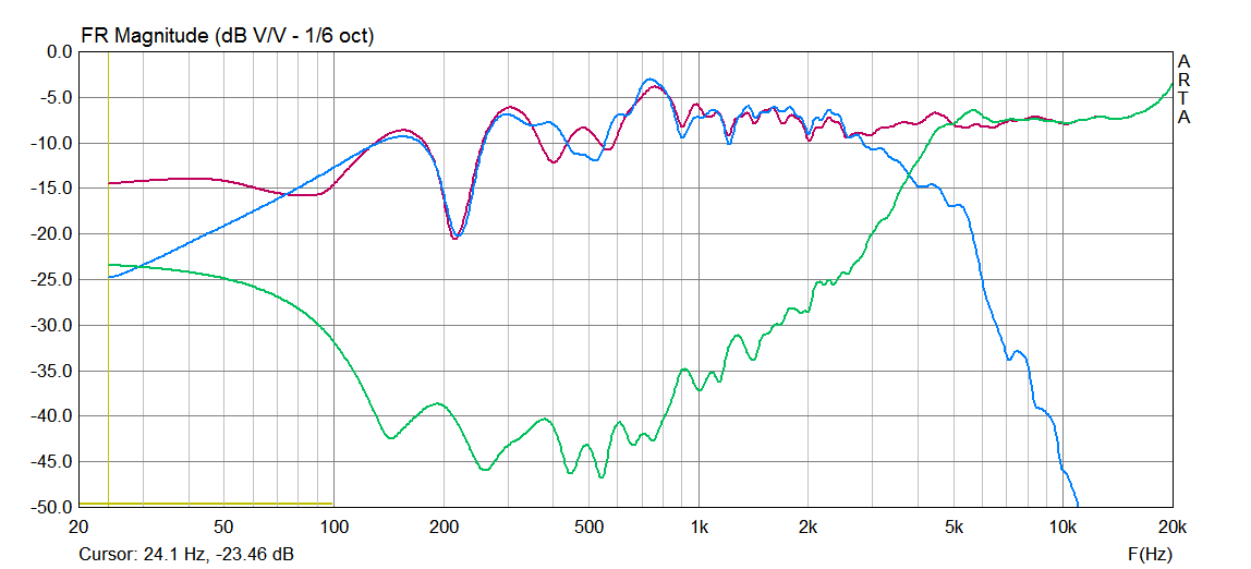 2. Пик 5 кГц срезан всего на 10дБ ниже общей АЧХ - следствие мелкой катушки ФНЧ.