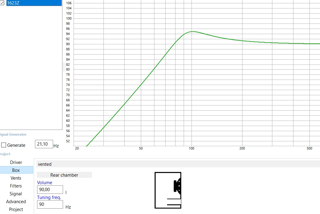 90 литров ящик получился случайно, так как изначально хотел сделать просто тестовые ящики. Попробовать получить полку от 50Гц хотелось бы попробовать, если это было бы возможно в моем случае. Сейчас пока натянул второй слой ткани, более плотной, тем самым приблизив ситуацию близко к ЗЯ, стало лучше, но все равно не то, что ожидалось. Спасибо за ответы и за советы.