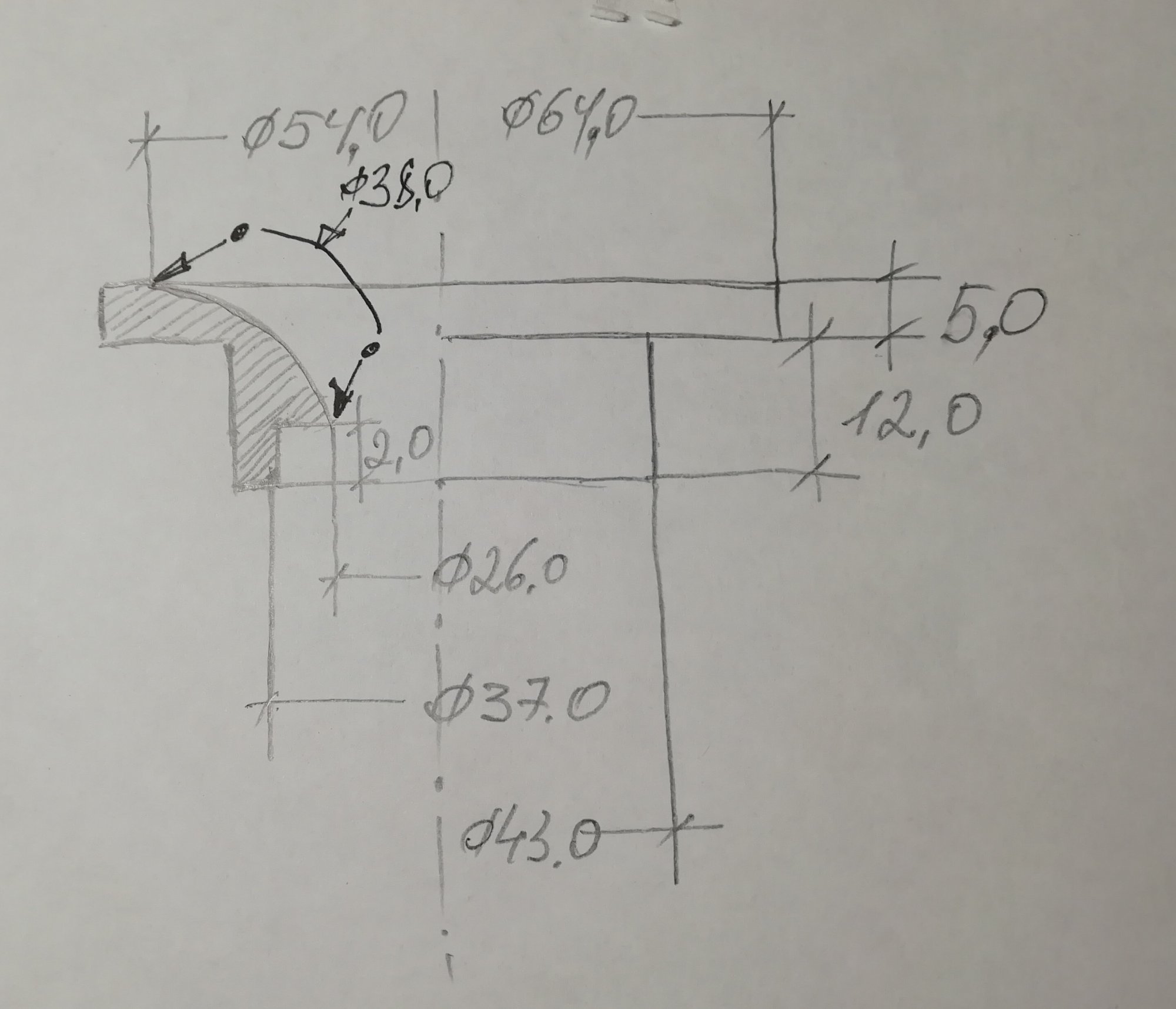 Ага, с кривульками Безье знаком как то не по наслышке. Выкривлю по любой функции. Главное, не зайти за отметку 0,5...🙂Я когда снимал размеры с оригинала, тоже кривую снимал на лекало. Но оно утеряно конечно же. Оказалось, что достаточно между точками нужных диаметров приложить окружность диаметром в 38 мм, и она совпадёт идеально. На чертёжике всё будет указано.