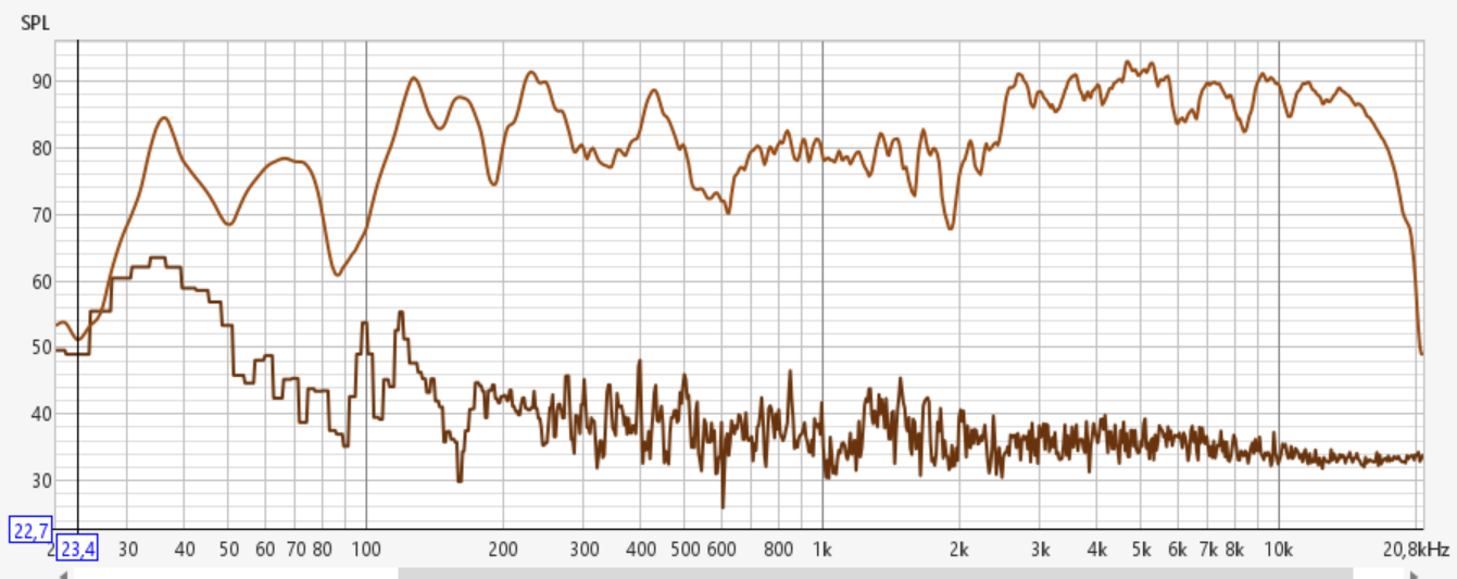 В целом я с вами согласен, характер наклона полки шума на показанных измерениях не характерен естественному шуму в помещении. Желательно разобраться в причинах такого наклона полки шума, я иногда по картинке THD контролирую адекватность измерений т.е. если вижу полную пургу на графике THD, то это значит чёт я перемудри с измерениями. Хотя чаще всего я вижу пургу на импульсе, т.е. когда импульс размазанный по времени, значит точно перемудрил...