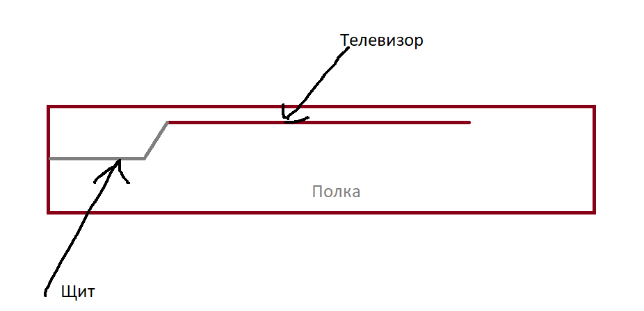 А ведь и правда: ТВ-то сейчас огромные. Но придётся-таки отодвинуть щитки от стены сзади, а то никакой синтепон не поможет. И можно щитки поставить немного непараллельно стене и т.д.