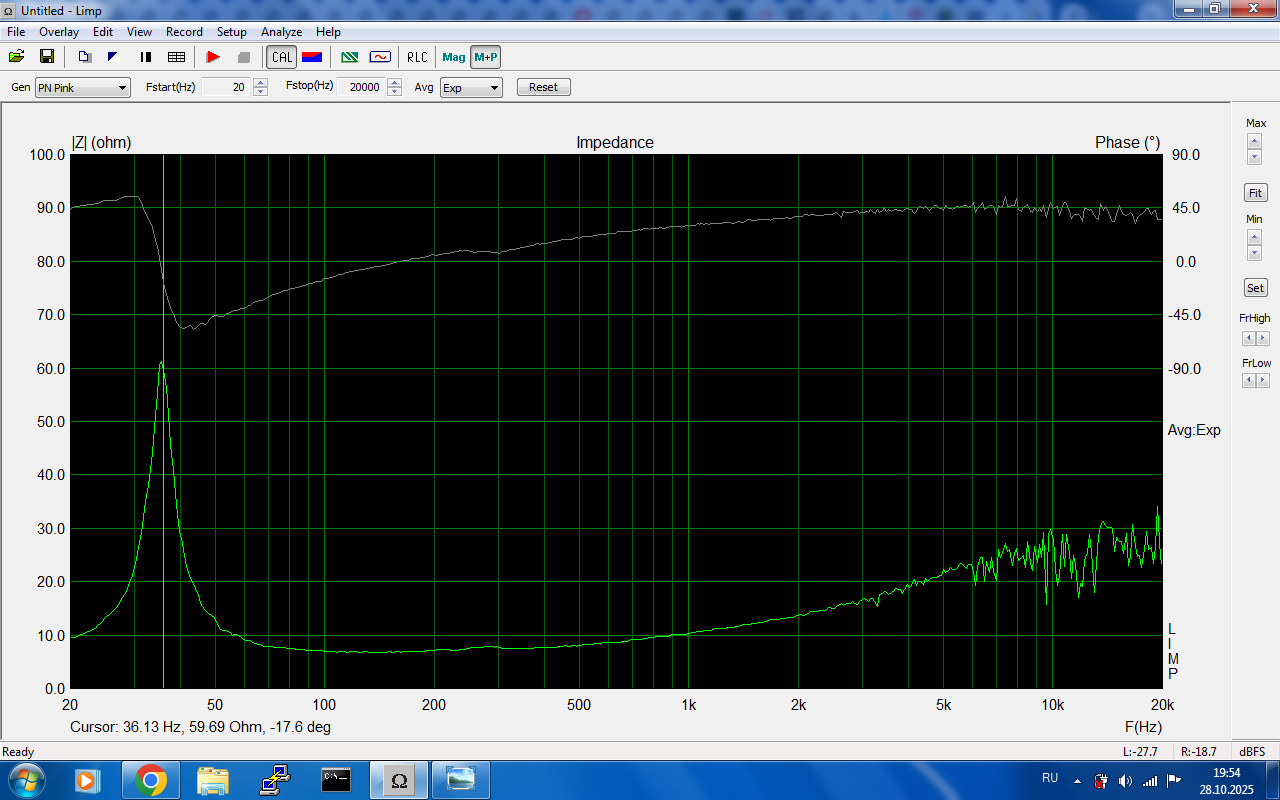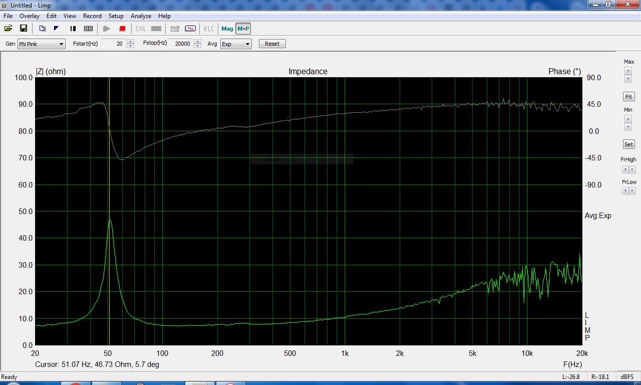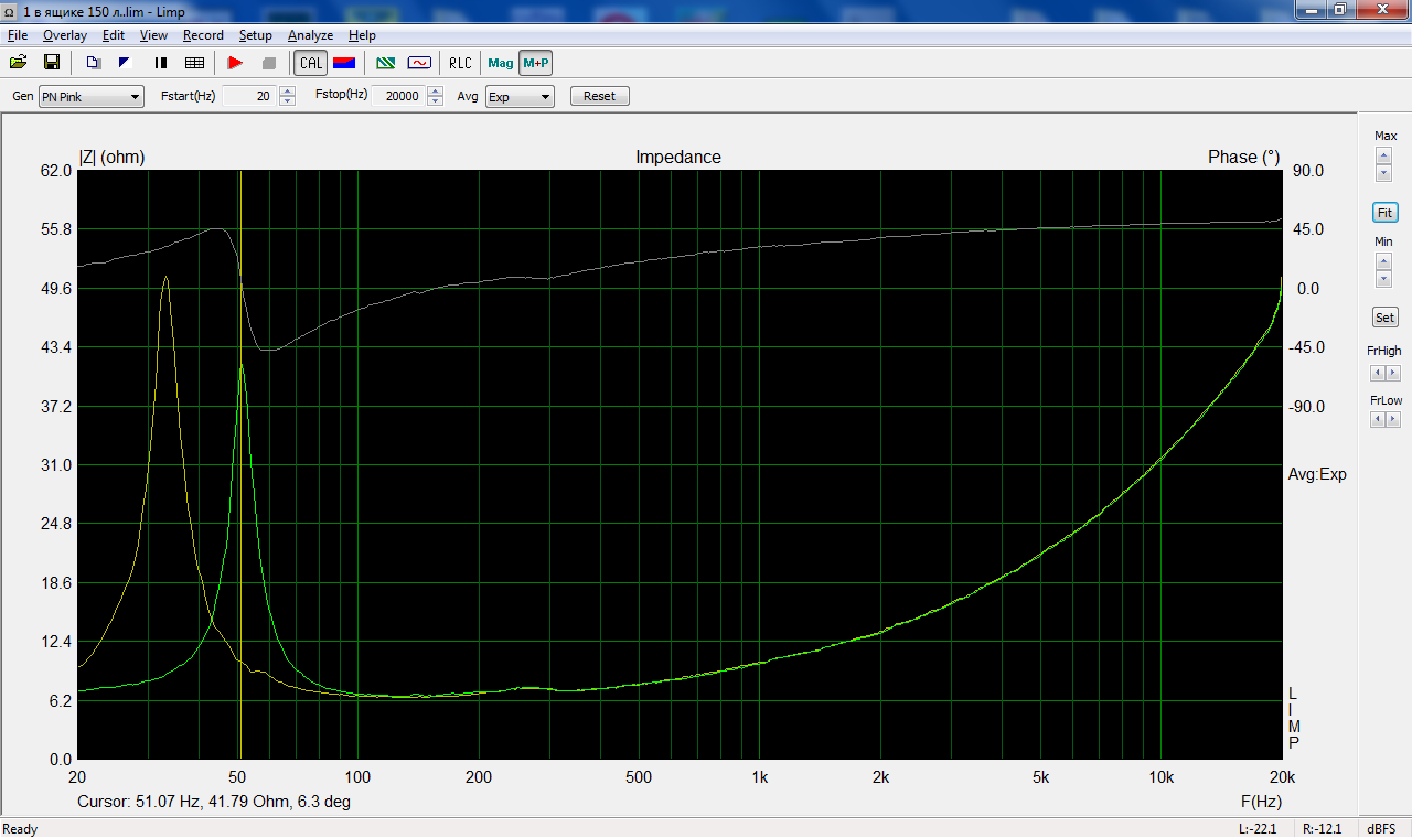 На самом деле думаю как в LIMPе наложить две кривых импеданса, до и после помещения головки в ящик. В мануале не написано как это сделать. Возможно поэтому у меня не активно окно. куда обьем ЗЯ записать надо.