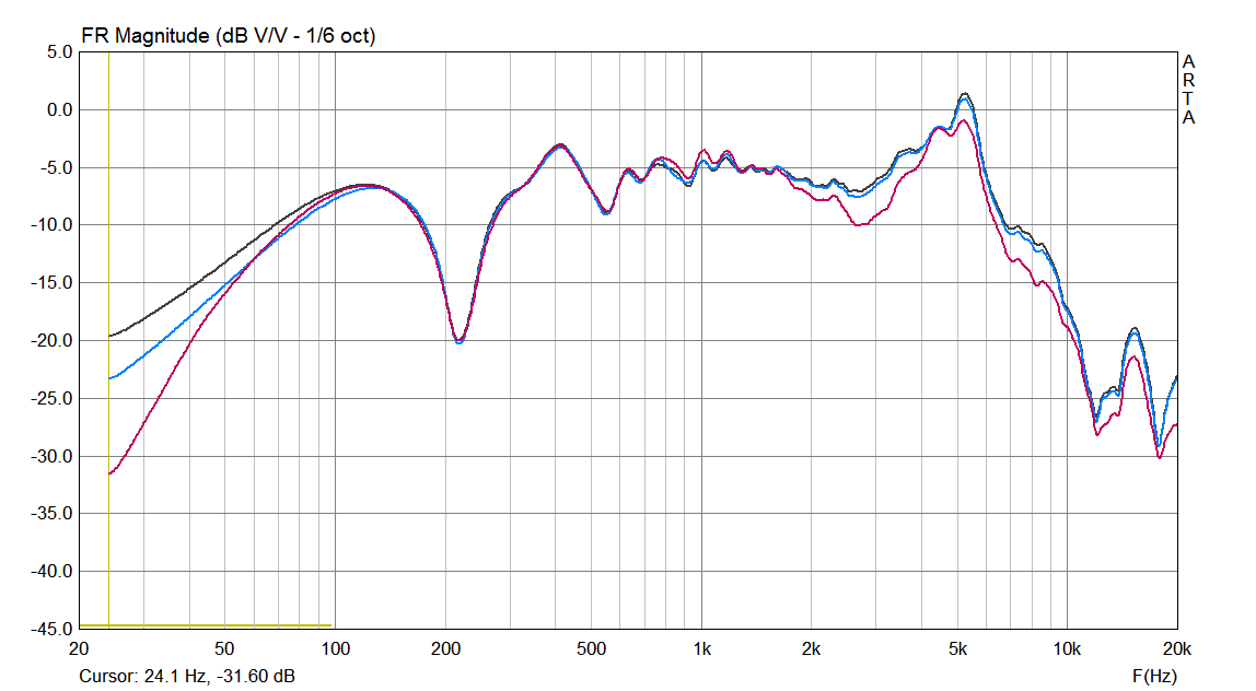 Да, с вариантом 5 сильно стараться с фетром не надо, после вариаций с уровнем ВЧ пробуйте. Задача - чтобы синяя шла не выше чёрной...