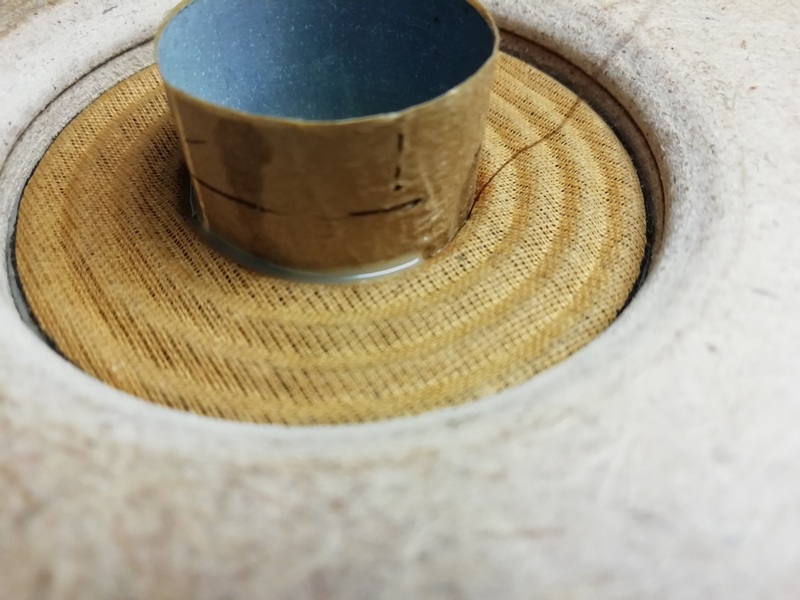 С годами происходит осыпание пропитки с тканевого купола. Каркас катушки приклеен именно на пропитку и соответственно с этим фактом, происходит или полный отрыв каркаса