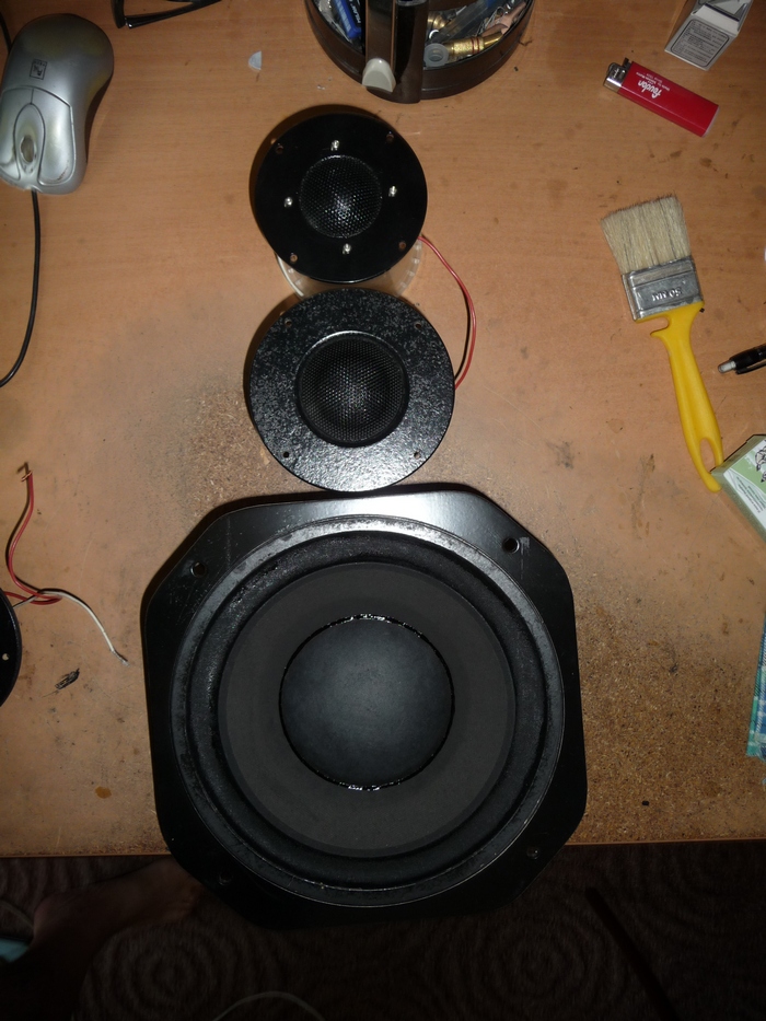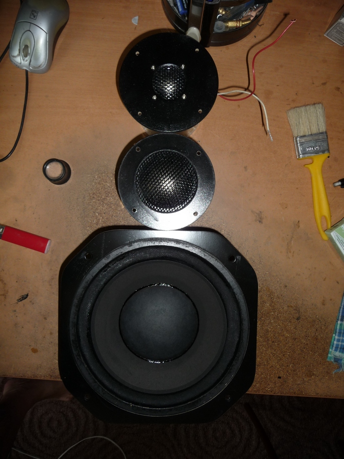 К нему самодельная тканевая, купольная 1" пищалка на восстановленной неодимовой МС от Vifa.