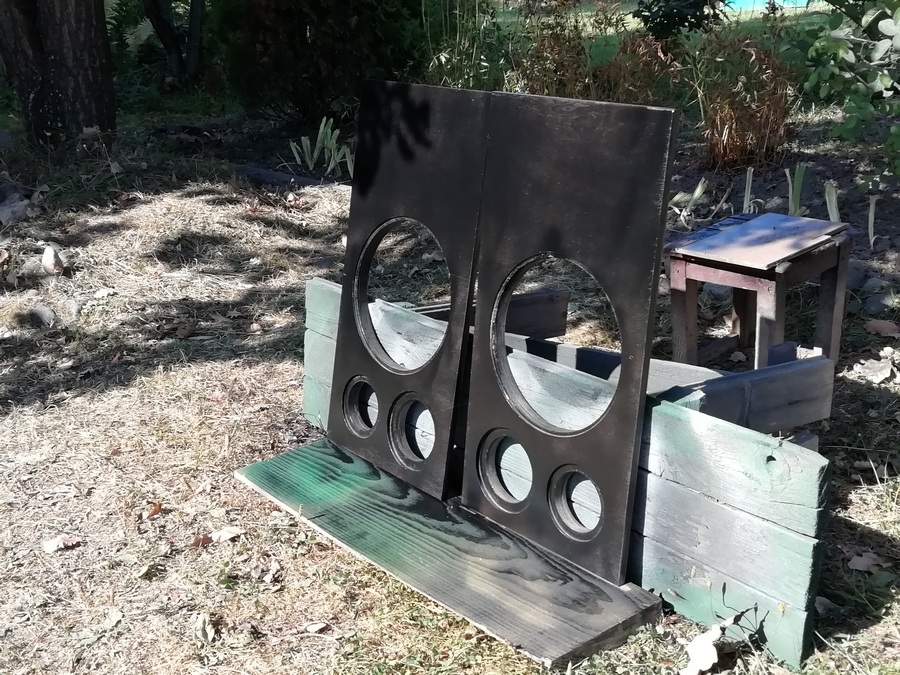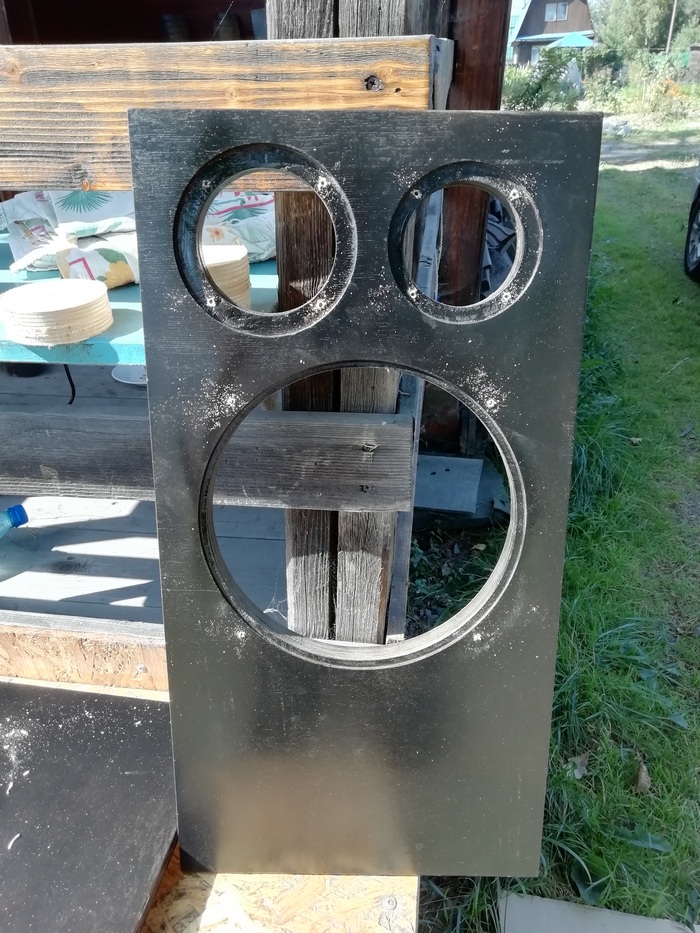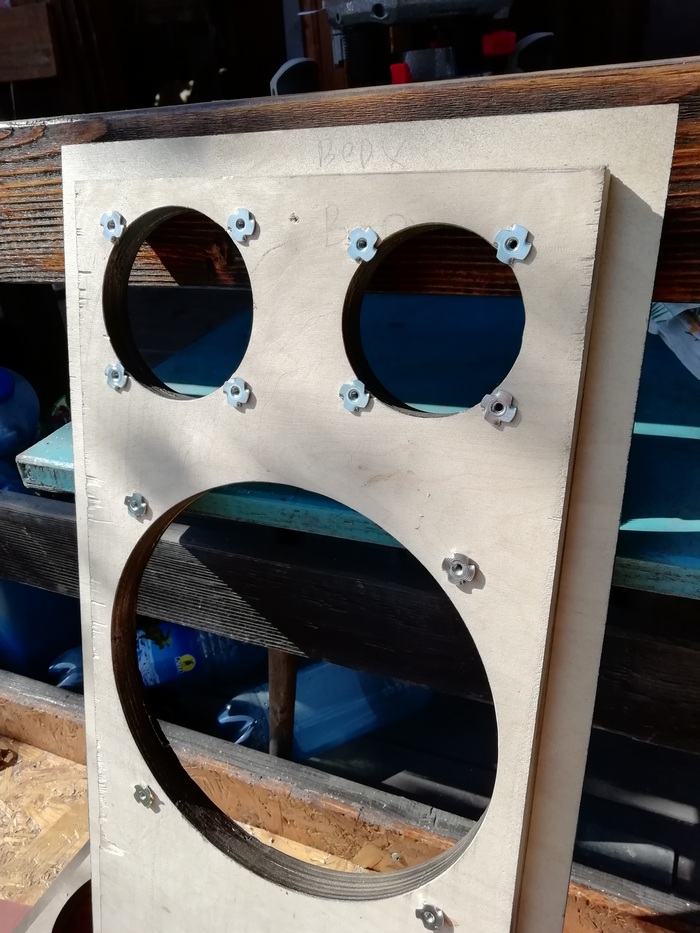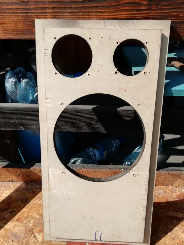 Передняя панель собрана из двух слоёв 12 миллиметровой фанеры