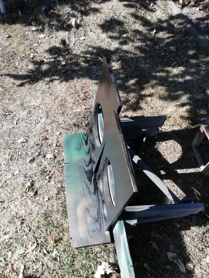 IMG_20210903_142858.jpg IMG_20210903_161840.jpg С отверстиями меньших диаметров уже возникли сложности, но не надолго. На ходу придумал и сделал некое "устройство" которое позволило иметь четыре диаметра воздействия. 100 мм / 120 мм - углубления под фланцы. (1/2) - соответствующие диаметры отверстий.