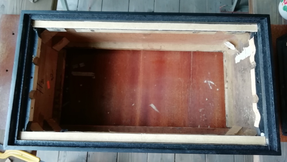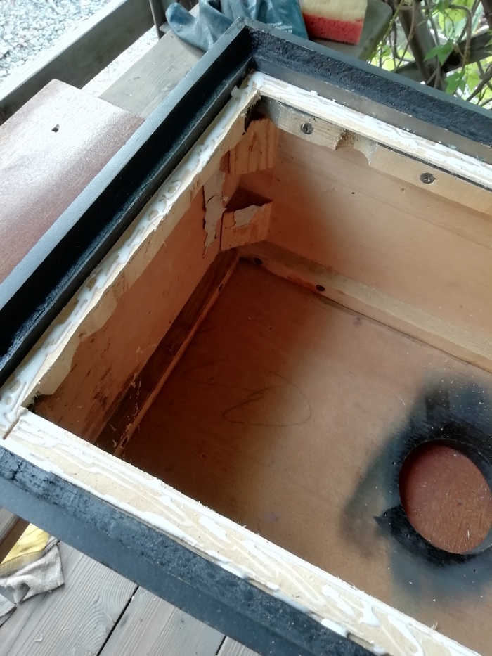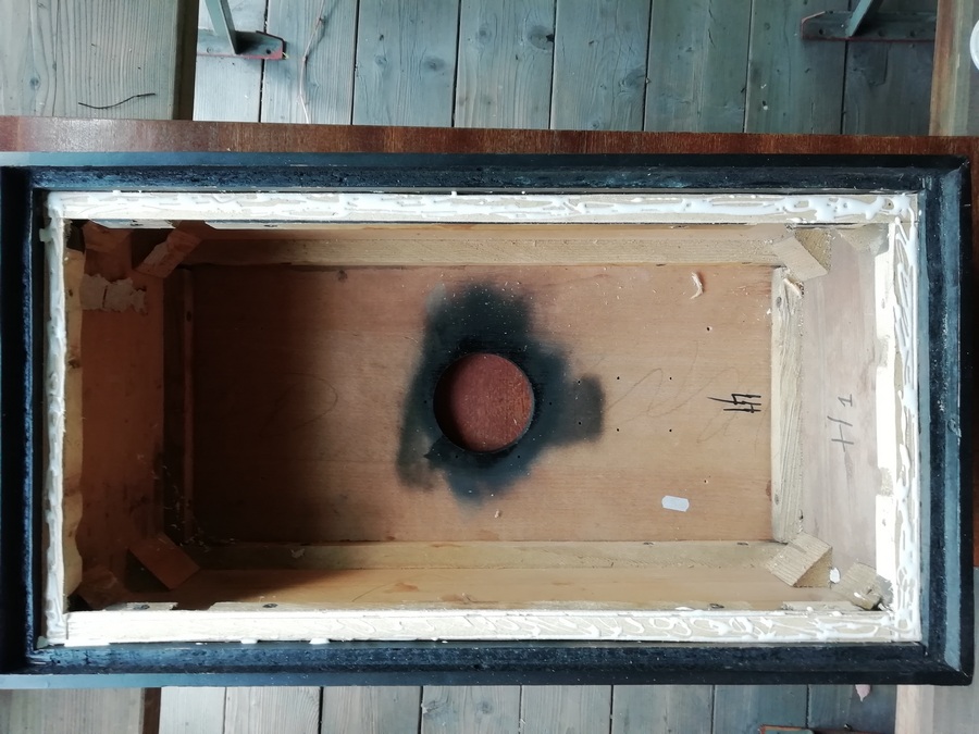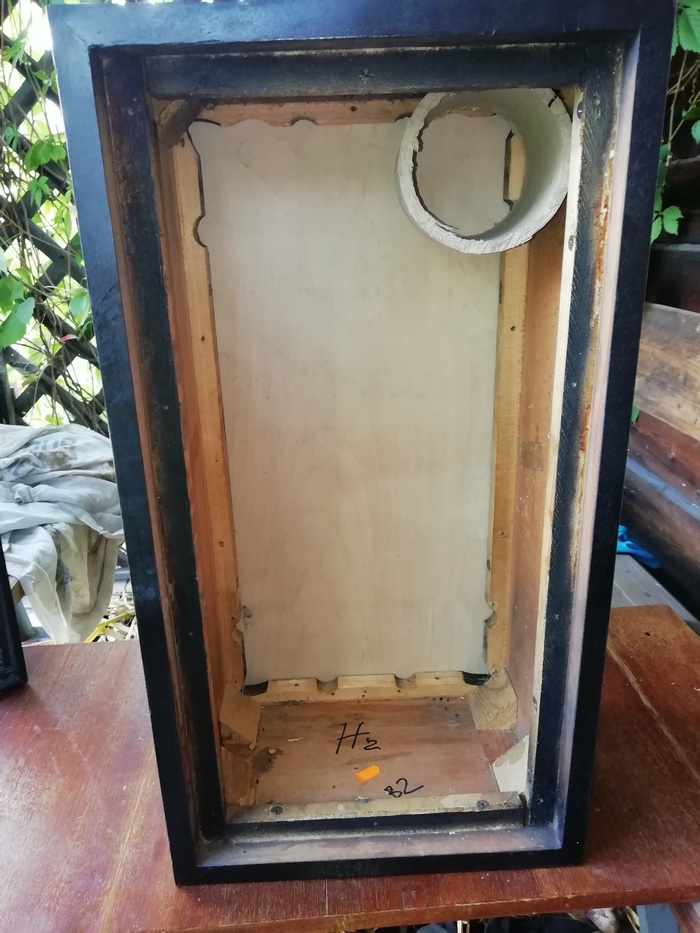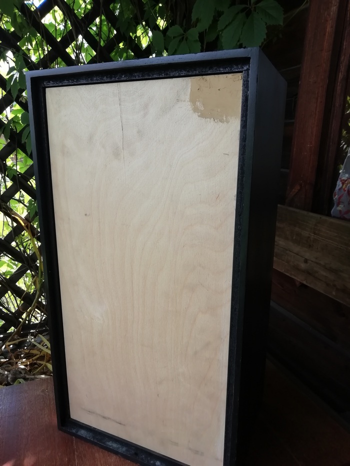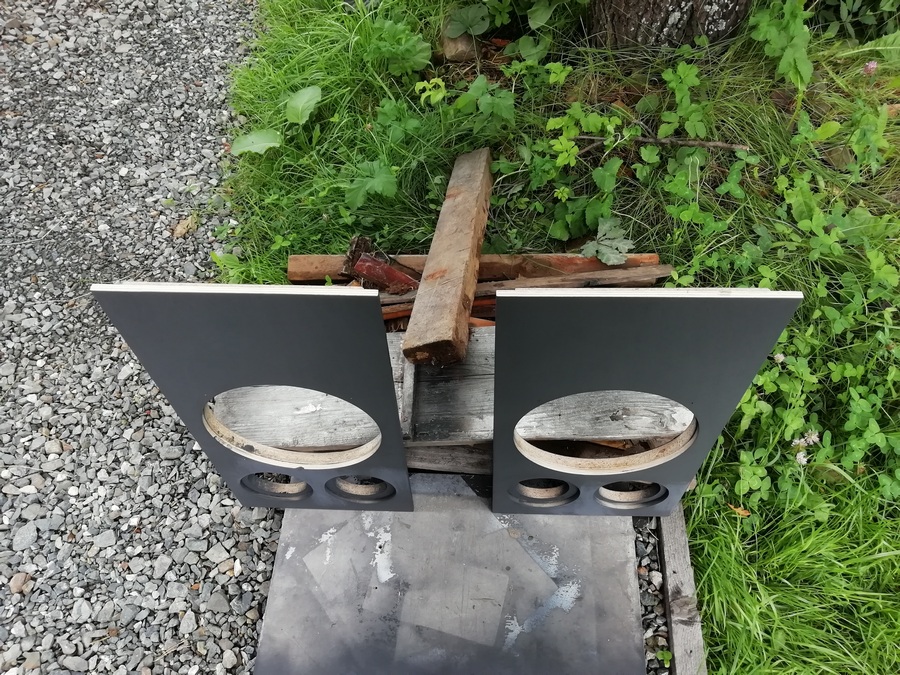 Затем из пары подходящих кусков мебельной ДСП вырезал внутреннюю часть фронтальной панели, которая встаёт между упорных реек корпуса АС. Внешне и внутренне - аналог стоковой # 245, стр. 9 этой темы, только с другими динамиками.