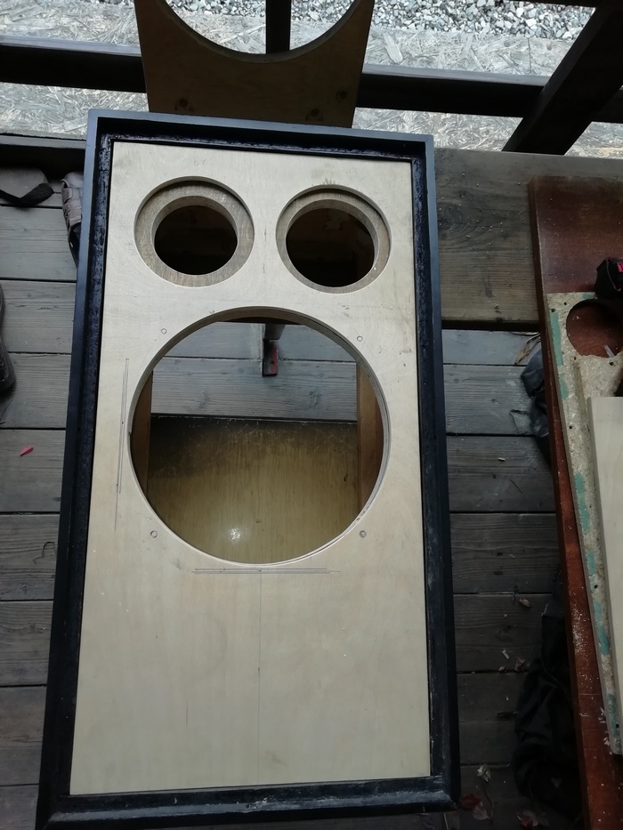 Со всеми обязанностями по огороду только и удалось более точно подогнать отверстия в наружной части фронтальной панели под СЧ/ВЧ динамики
