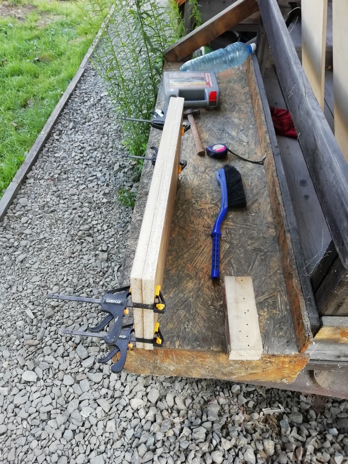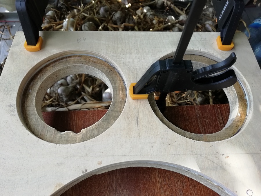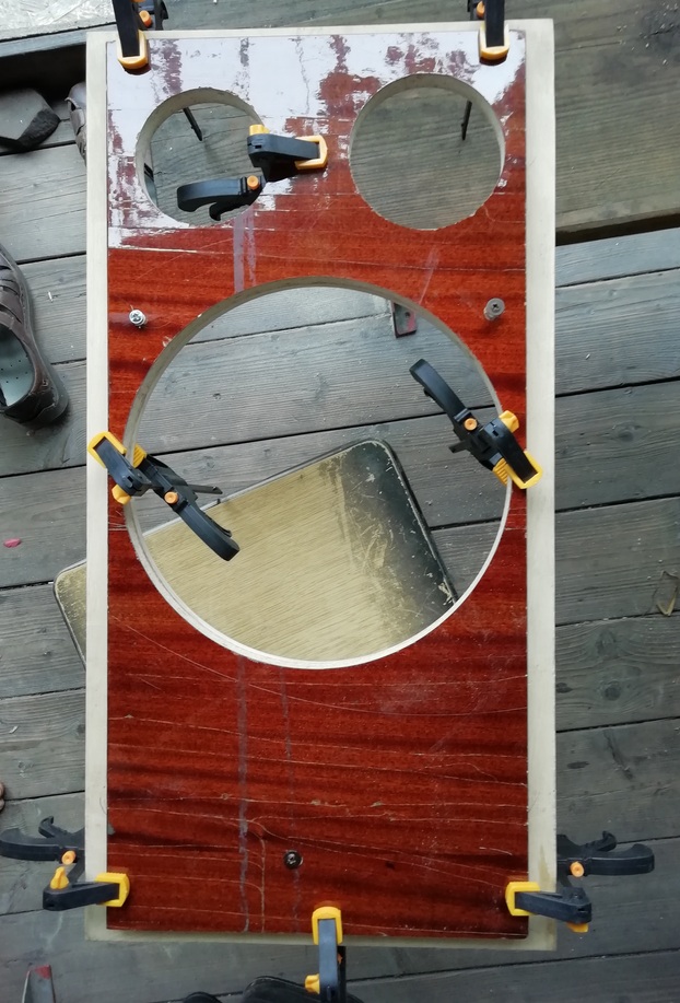 Так же стянул эти панельки по ровной стороне струбцинками и выровнял остальные три стороны к единому