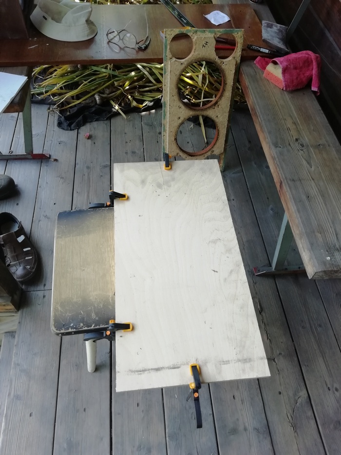 Сегодня - кровь из носа нужно сделать внутреннюю часть фронтальной панели. Завтра обещают ненавязчивый дождик при незначительном снижении температуры. А помещения для работ во время непогоды нет. Все работы - пиление, строгание, шлифование, покраска, всё на открытом воздухе. Под крышей допустима только сборка.