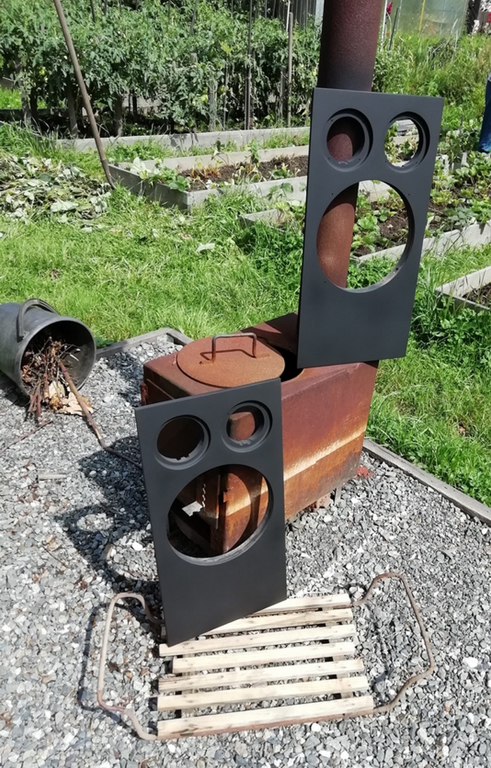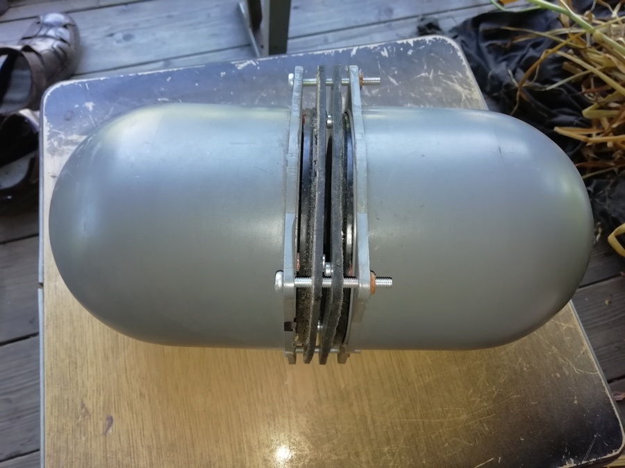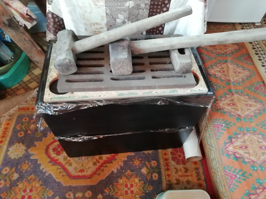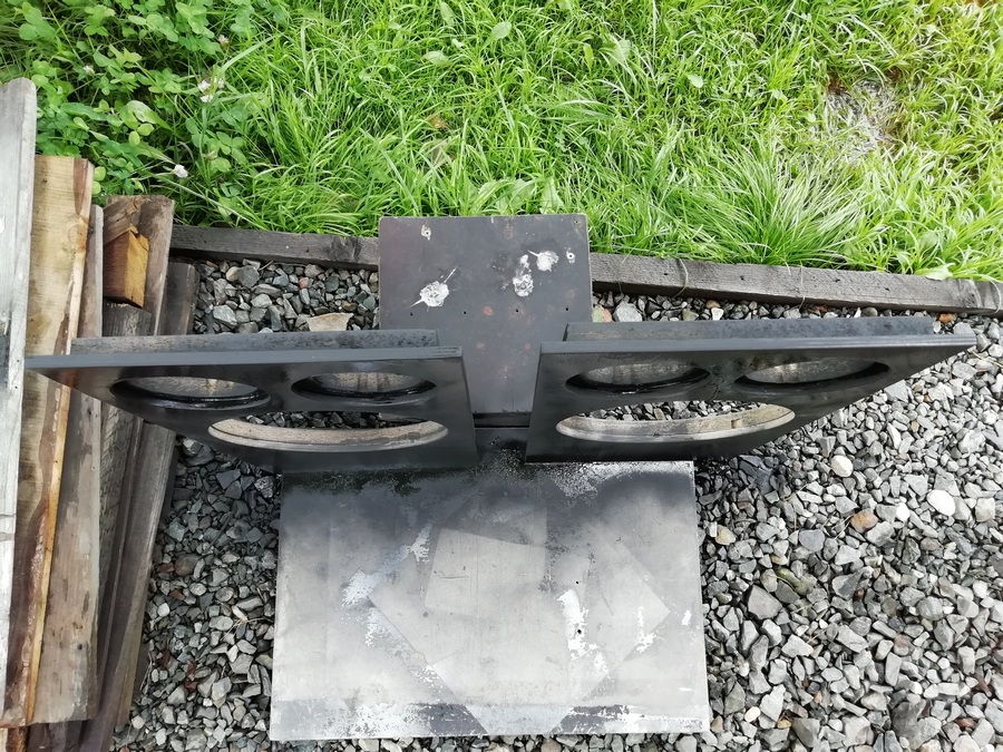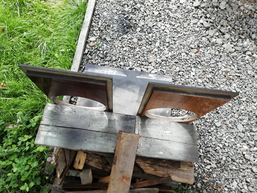 Точно так же поступил со вторым корпусом, который в готовом виде (со свежевклееной панелью) установил сверху первого. И уже сверху пары положил тяжеленный колосник из двадцатки (который мне вырезали как запасной к новой банной печке) и три кувалды одна другой тяжелее.