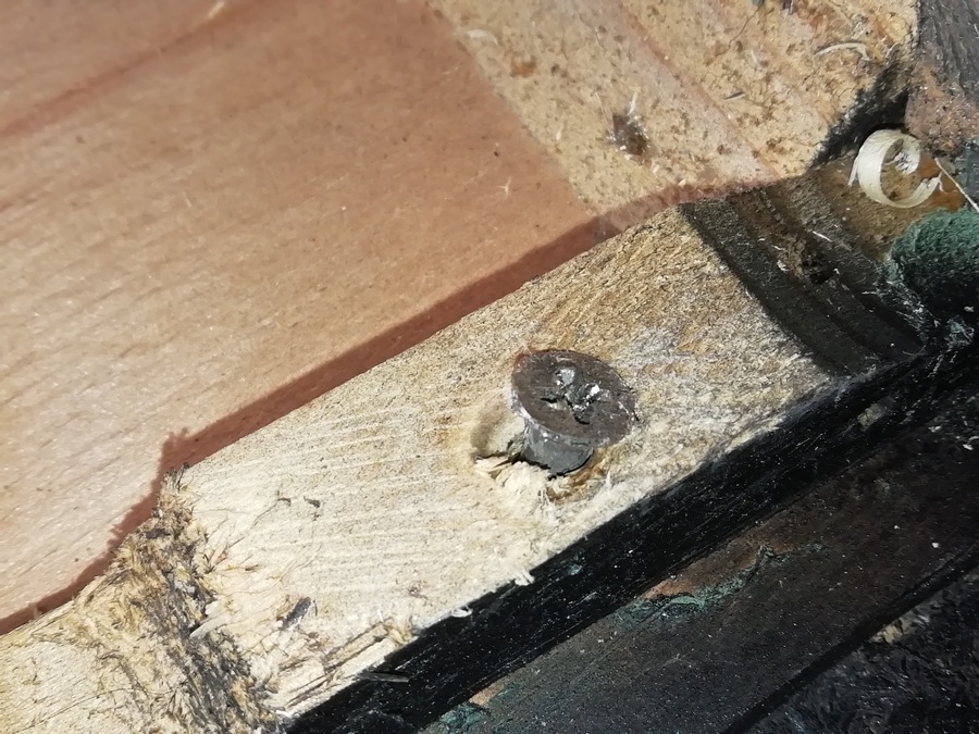 А вот второй сидел глубоко и пришлось снимать слой рейки, чтобы зацепиться плосками