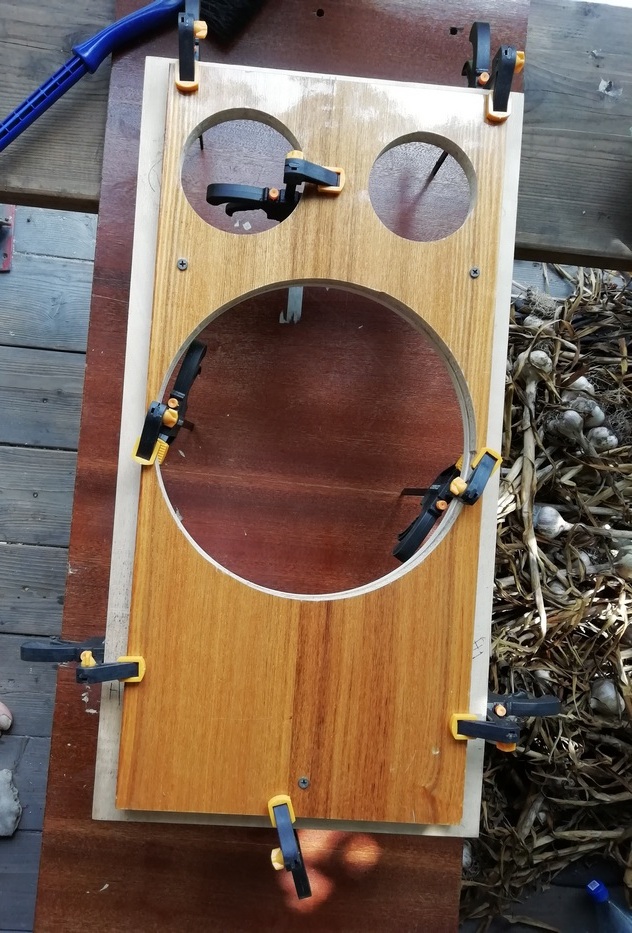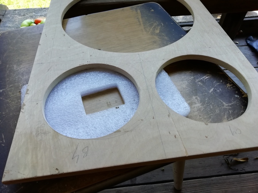 Пока не решил чем вырезать отверстия. Или фрезером (если куплю такую же фрезу. Старая слегка затупилась)), или электролобзиком.