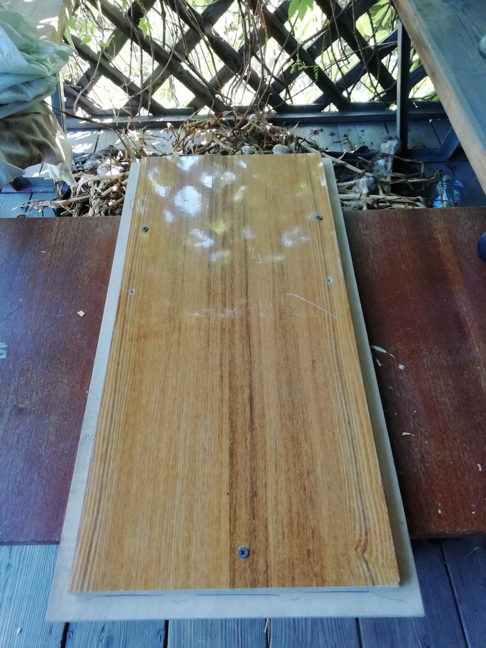 Со второй частью, внутренней, немного сложней. Как ни старался, а панели сделал чуть больше по вертикали. Пришлось чуток срезать наружную часть реек на которые укладывается внешняя часть панелей.