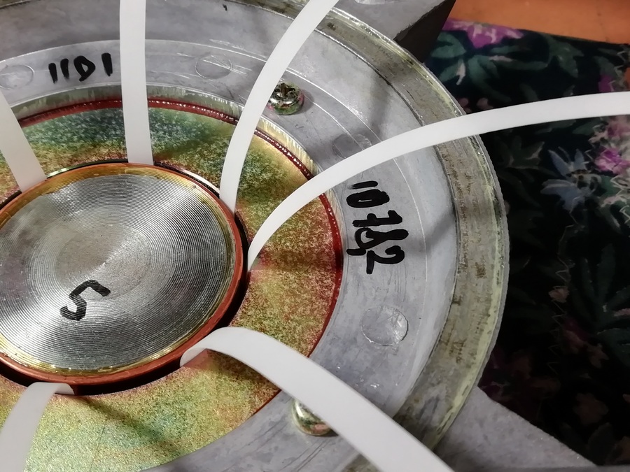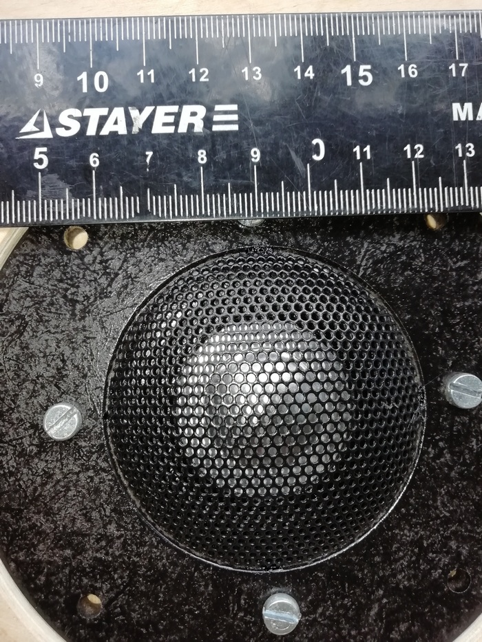 Эти динамики неплохо тянули вверх. На память - килогерц до семи. Были отклеены бумажные колпаки и приклеены на выступающий каркас алюминиевые впуклостью внутрь и прикрыты легко продуваемыми тканевыми колпаками.