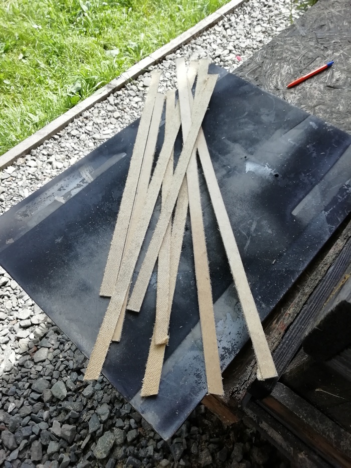 Родная панель имеет края толщиной в 12,0 мм, которыми она укладывается в паз, а новые имеют толщину в 8,0 мм, то пришлось (как собственно и на первой АС, нарезать полосок из ДВП толщиной в 3,0 мм