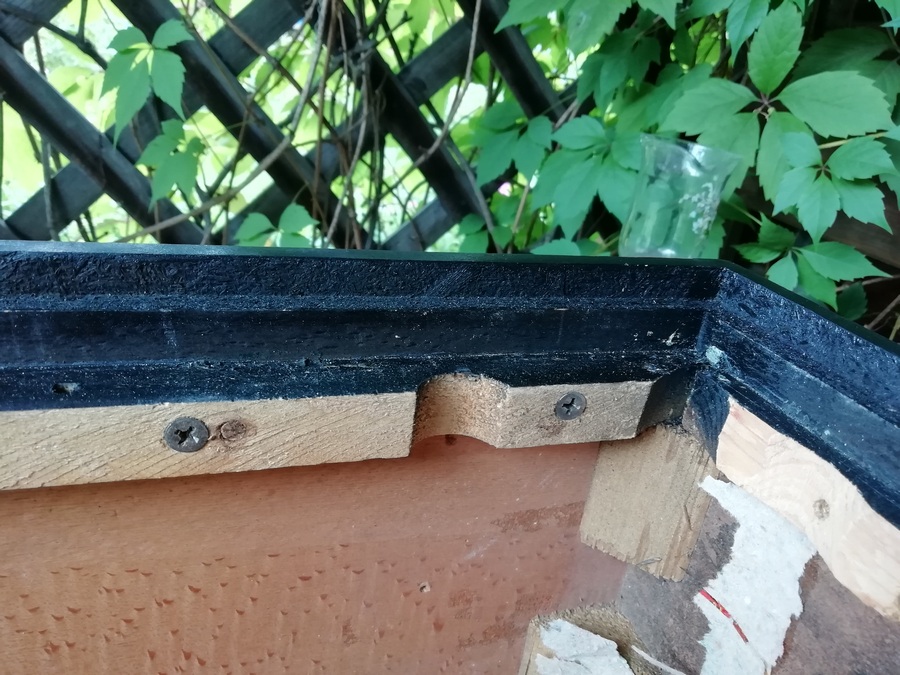Более ярко отметил внутреннюю часть реек и выставив уже по ним внутреннюю панель, прикрутил её к наружной короткими саморезами