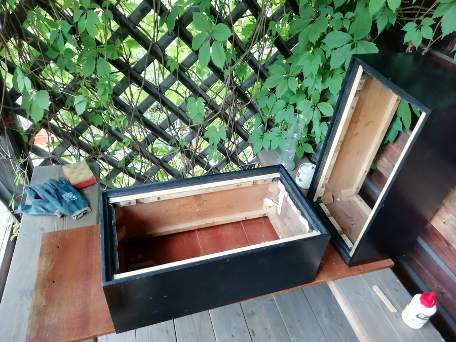 Довёл фронтальные панели до ума. Шпатлёвка и шлифование в этом помогли. Покрыл чёрным грунтом сначала грани кроме нижних