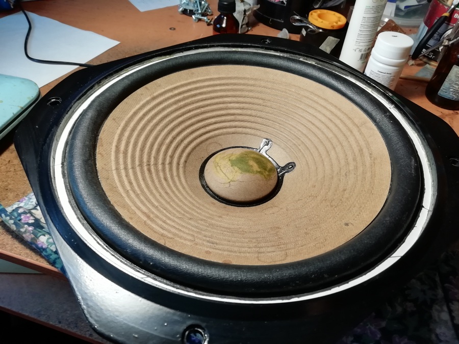 Буду красить в чёрный. По крайней мере вид не испортится. А если говорить о звуке или призвуке колпаков после пропитки ПВА при правке, то клей если и проник, то только в складки изломов где рыхлая бумага. Ну добавит, может быть, наверное чутка в сторону высоких.