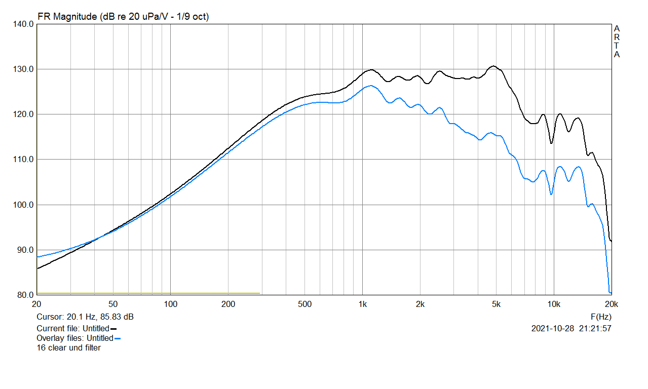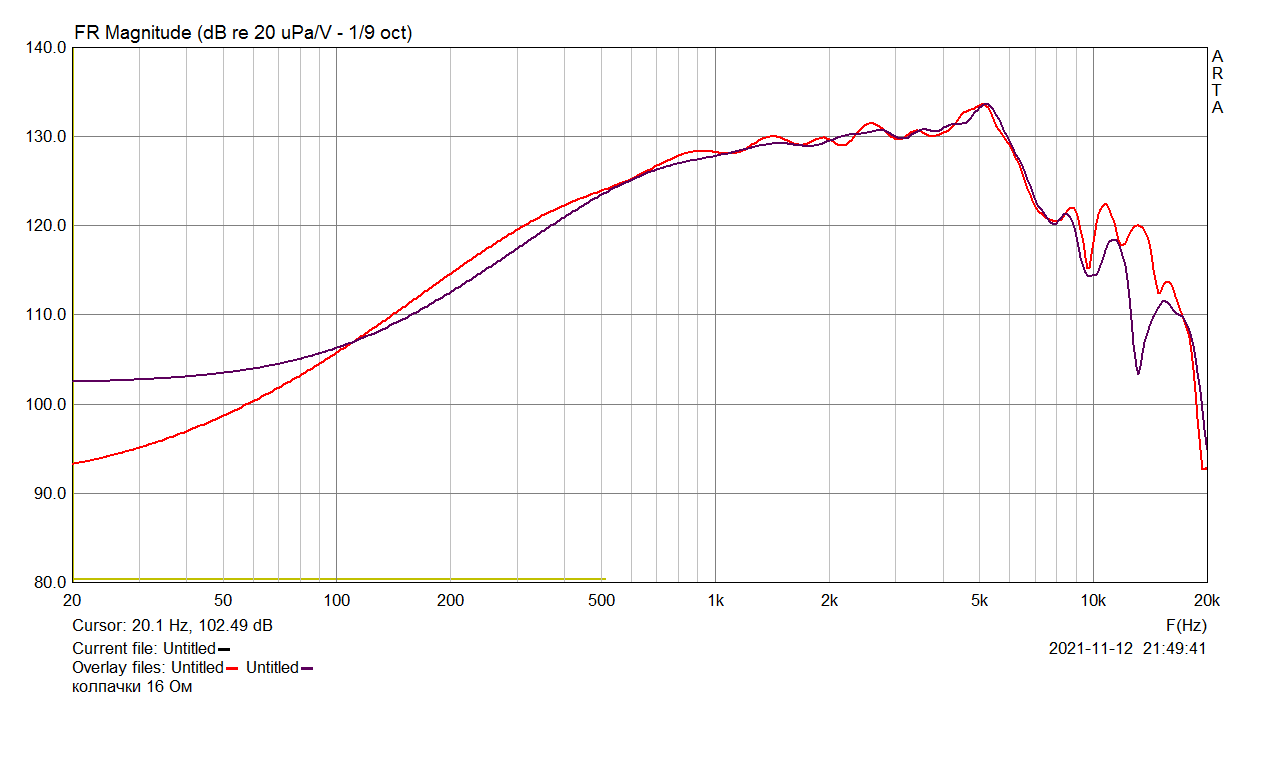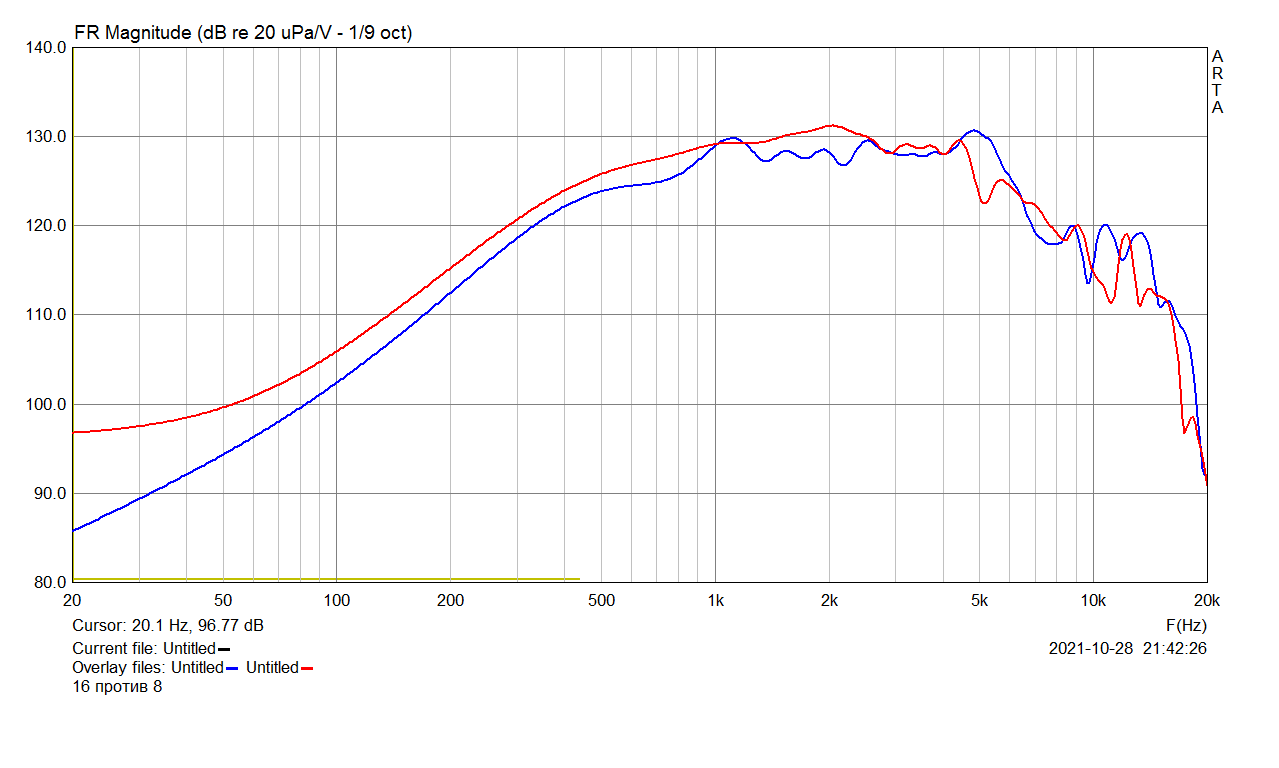 Три основных различия: наклон АЧХ (у 16-омного перекос к подъёму ВЧ), зона 5 кГц (разная окраска и другая стыковка с ВЧ динамиком), монотонность (у пшикнутого акрилом явно выше).