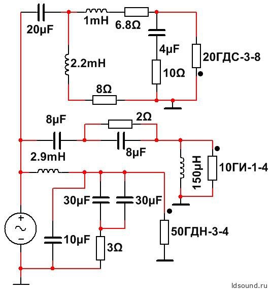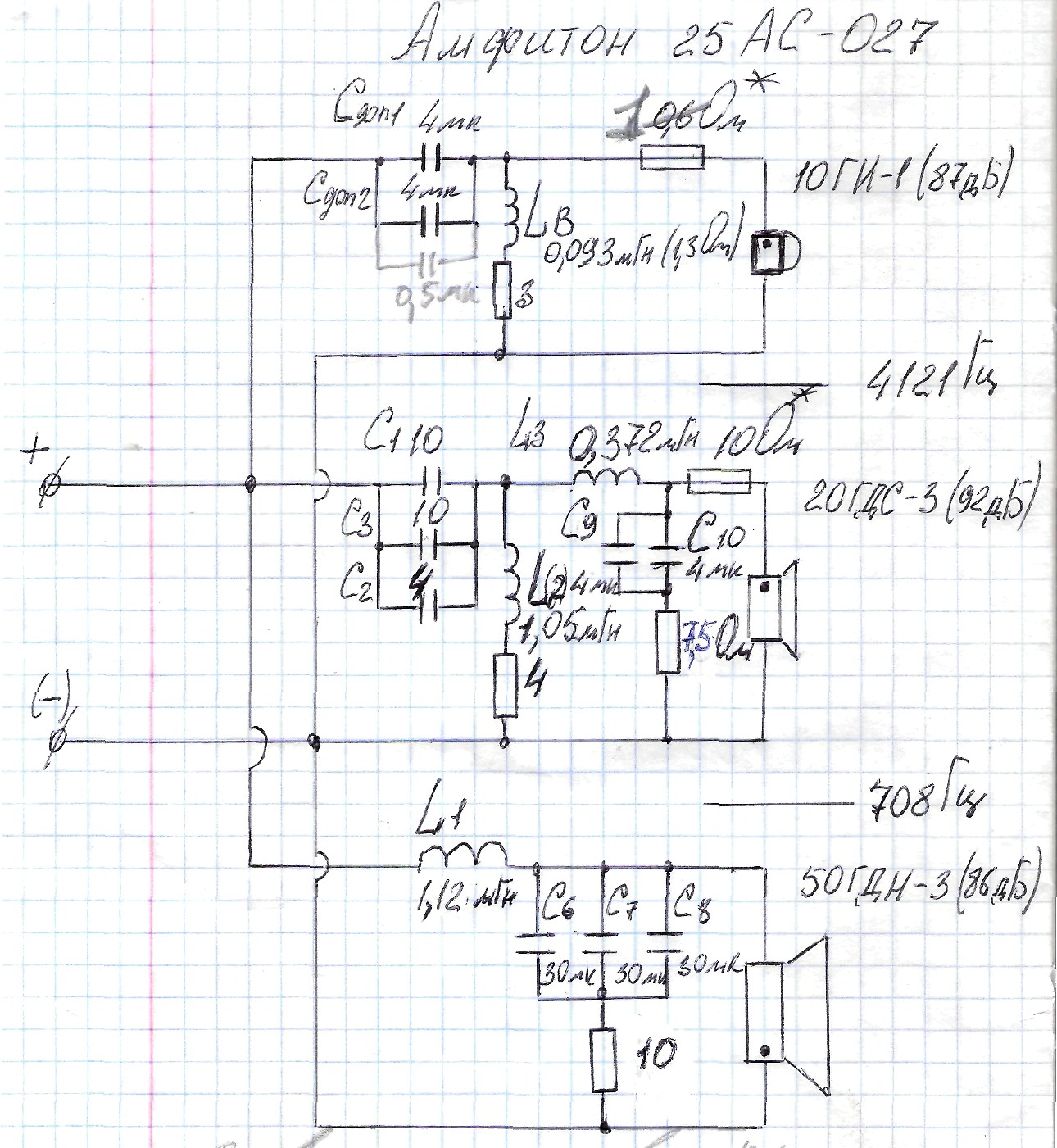 Здравствуйте, мил человек (не Амфитоном же Вас величать). Когда я сочинял те статьи, понятия не было, какая дрянная АЧХ у 50ГДН-3. А она имеет пик +10дБ на частоте 1,2к, с которым заводской ФНЧ с огромной как для 4-омного динамика катушкой и таким же огромным конденсатором, без резистора последовательно с ним, еле-еле справляется. Посему с резистором 3 Ома в придуманной мной и собранной Вами схеме ожидается уровень острого пика 1,2к в НЧ полосе