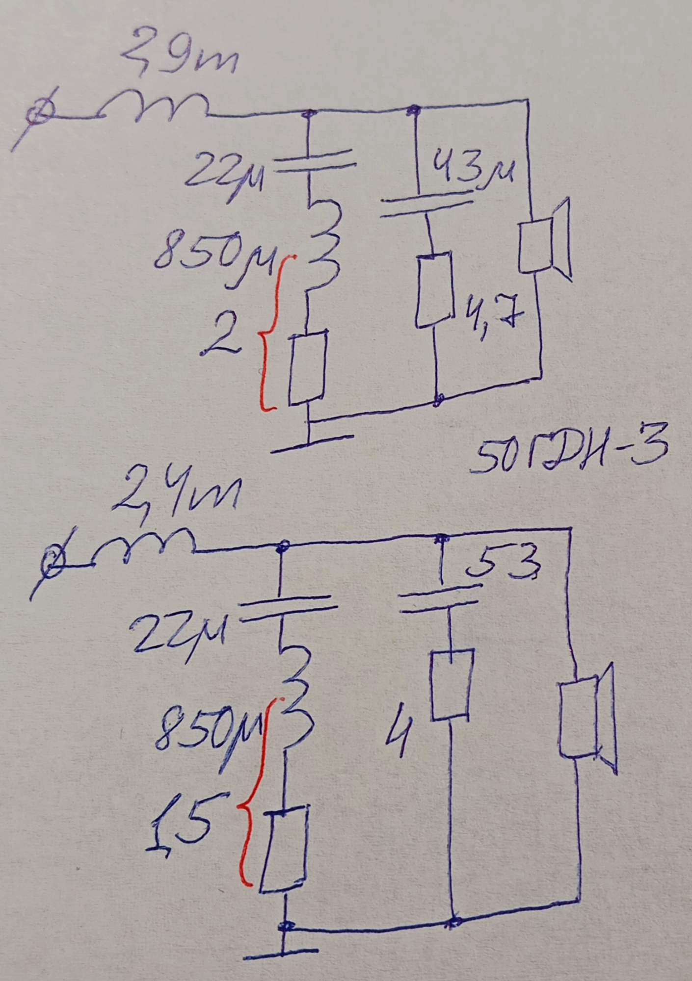 Та моя сочинялка была чисто теоретическая. Сейчас приоритет за другими топологиями - более сложными, но компенсирующими (насколько возможно) родовые болячки 50ГДН-3. По последним данным, АЧХ 50ГДН-3 с расстояния 50 см в точке сведЕния нижнего стыка в корпусе 25АС-027