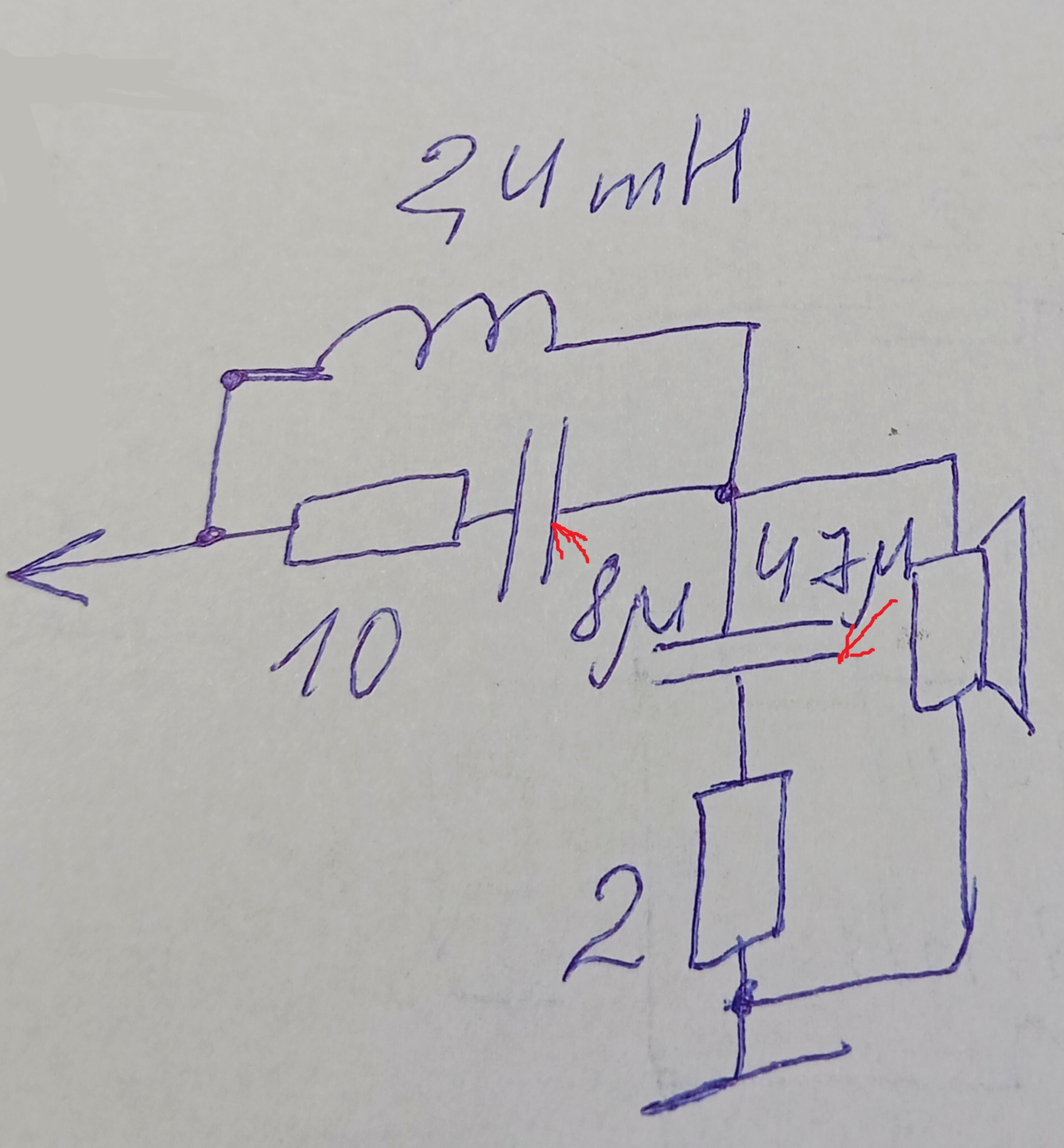 Ihor просто не дошло, а так то более оптимальной была бы схема с последовательным режекторным контуром. Для катушки 2,9 мГн параметры режекторной цепочки 10 Ом+6,8 мкФ.