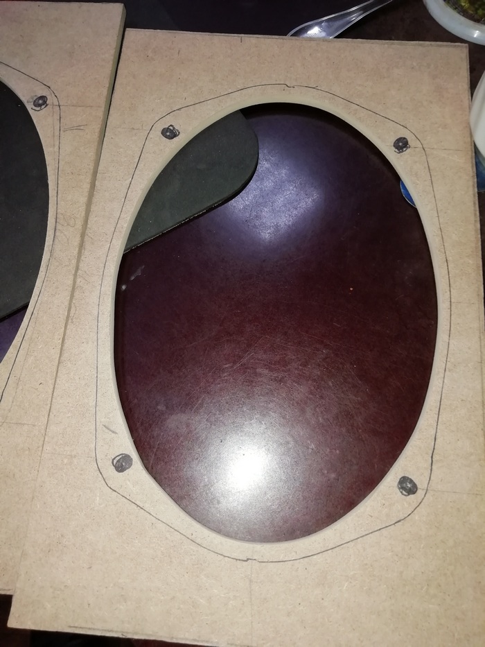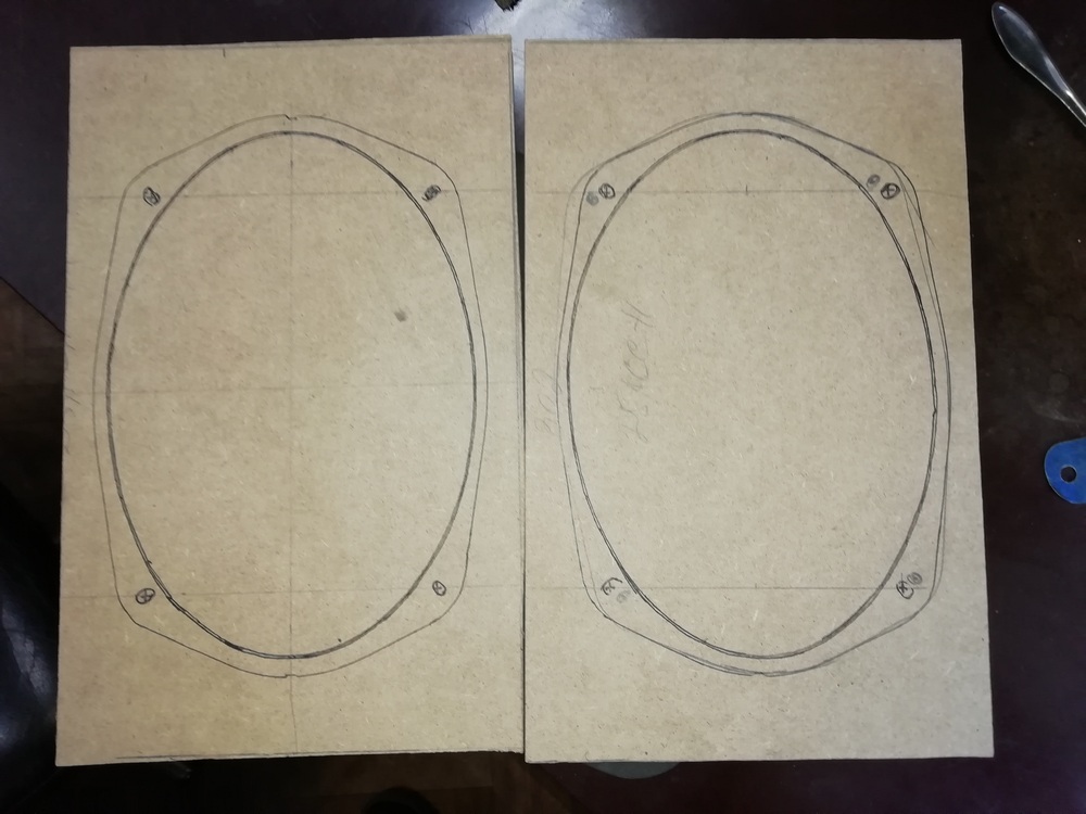 Надо снять обе родные верхние части стенок с обеих АС, и по ним сделать эти. И по размерам, и по отверстиям для крепёжных саморезов.